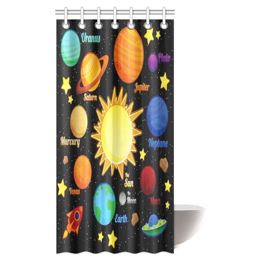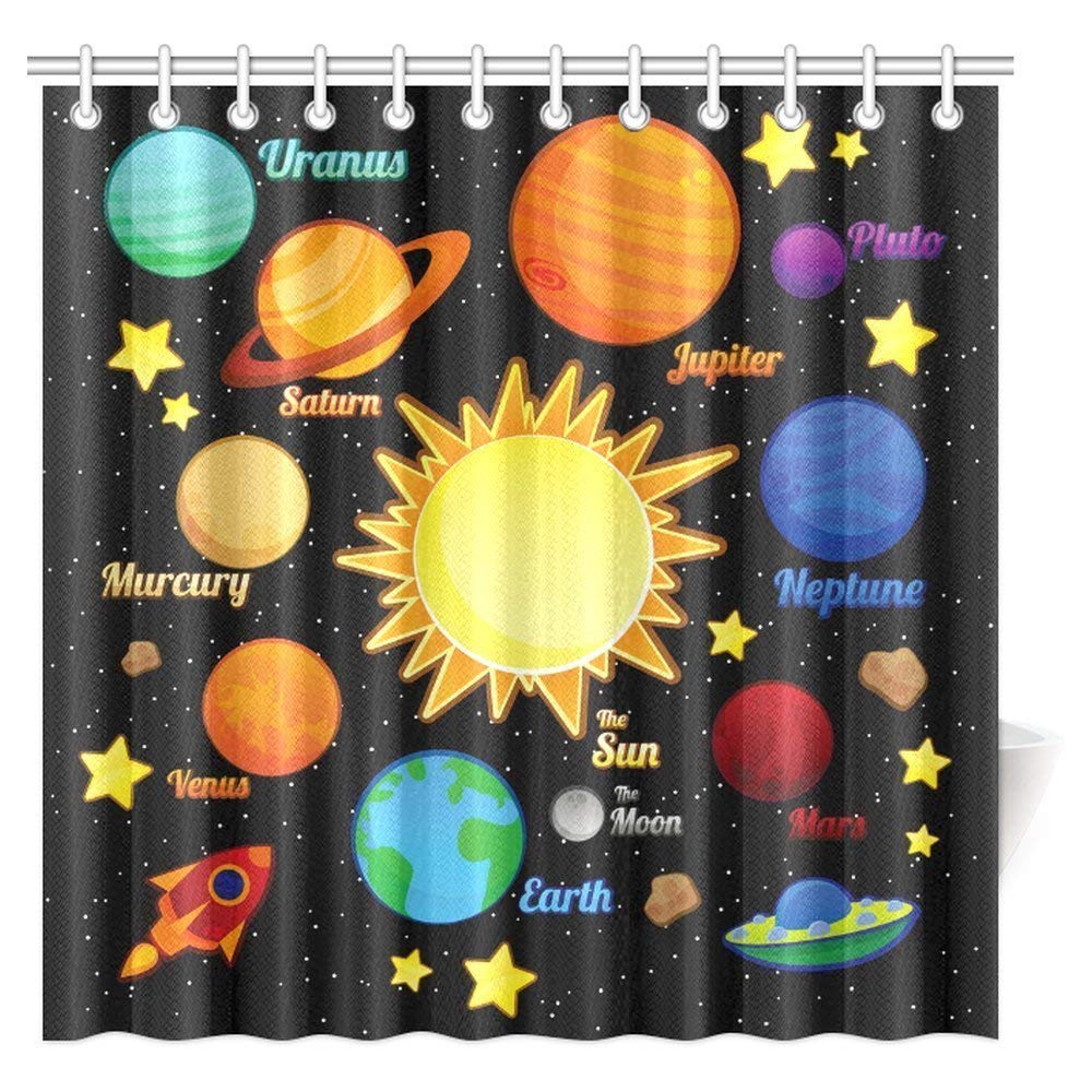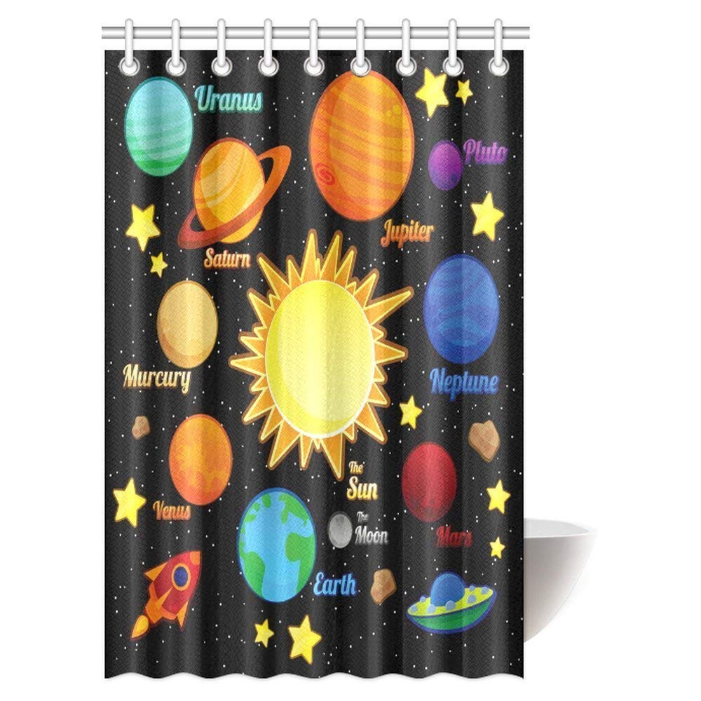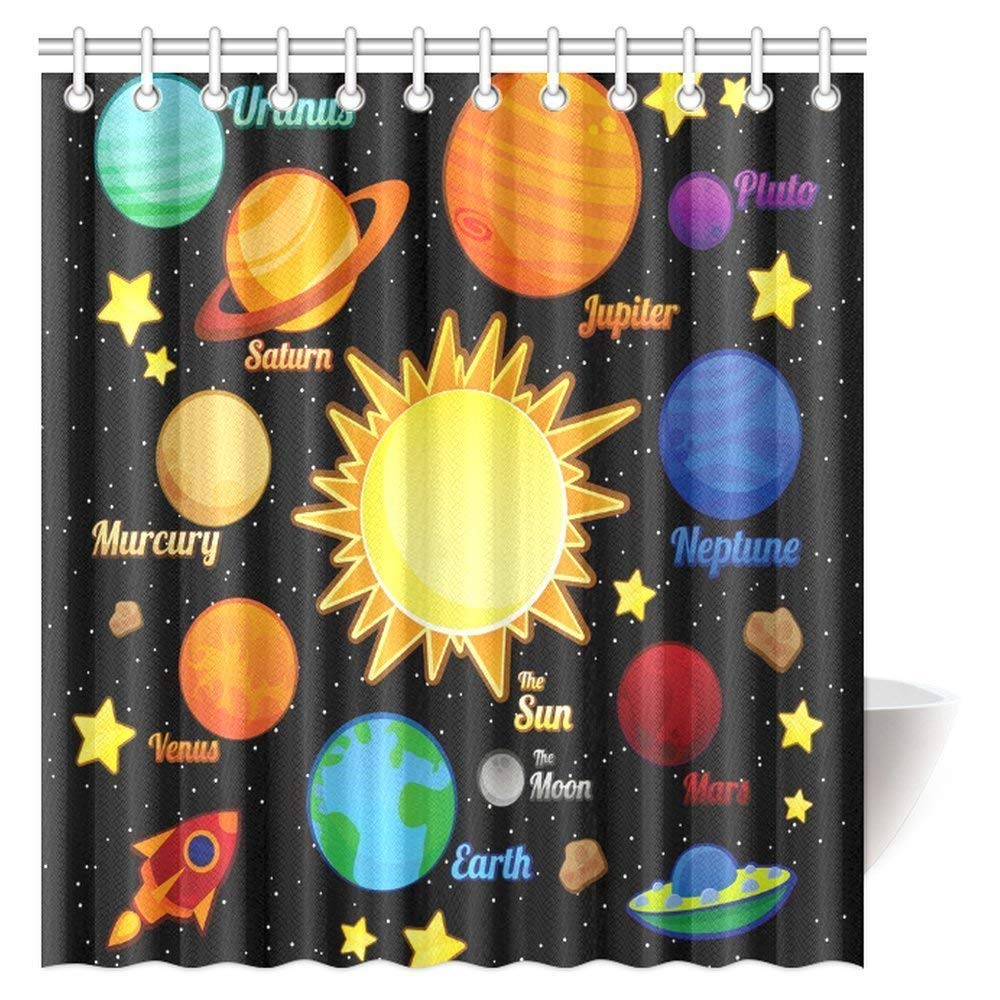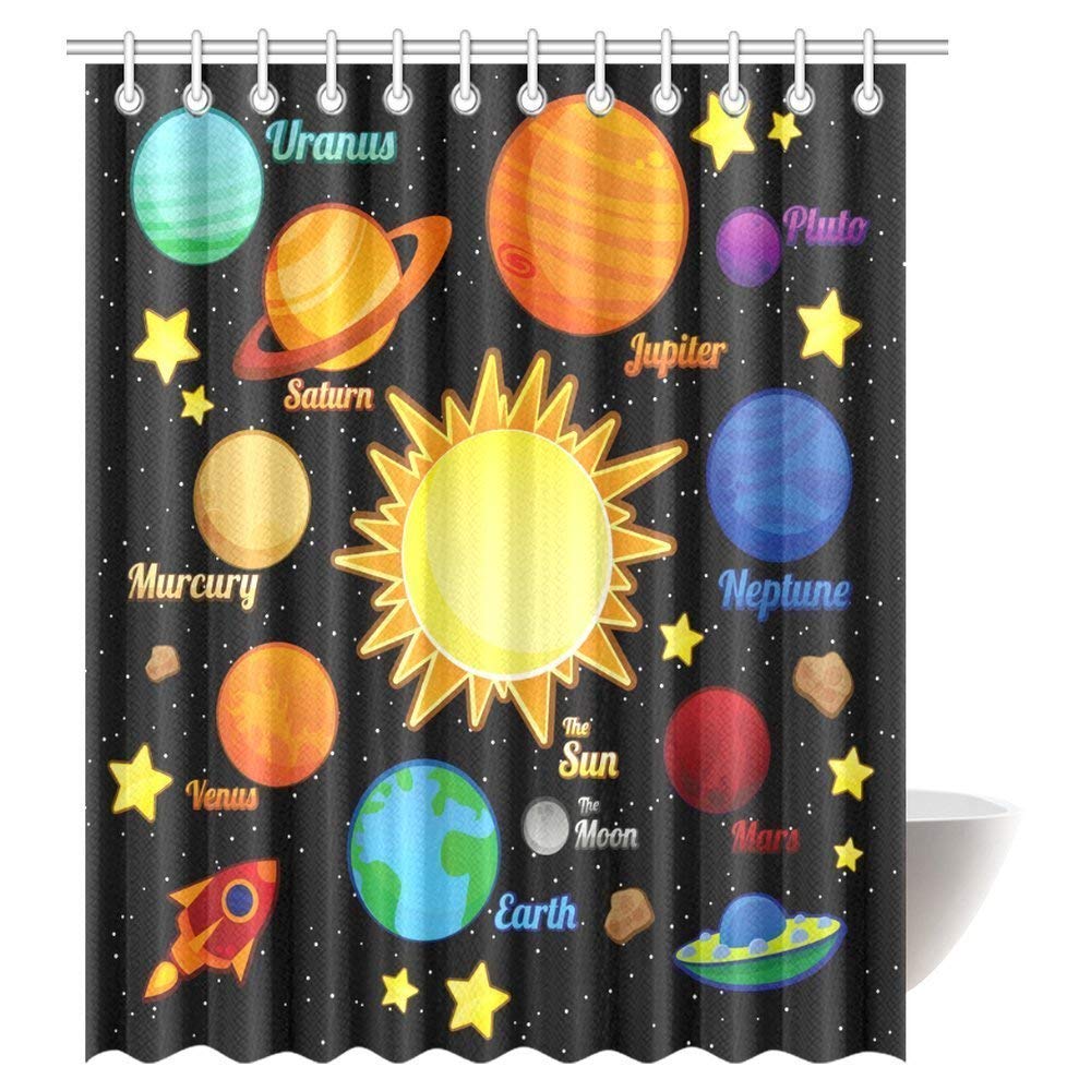 Outer Space Decor Shower Curtain, Solar System of Planets Milk Way Neptune Venus Mercury Sphere Horizontal Bathroom Shower Curtain Set with Hooks