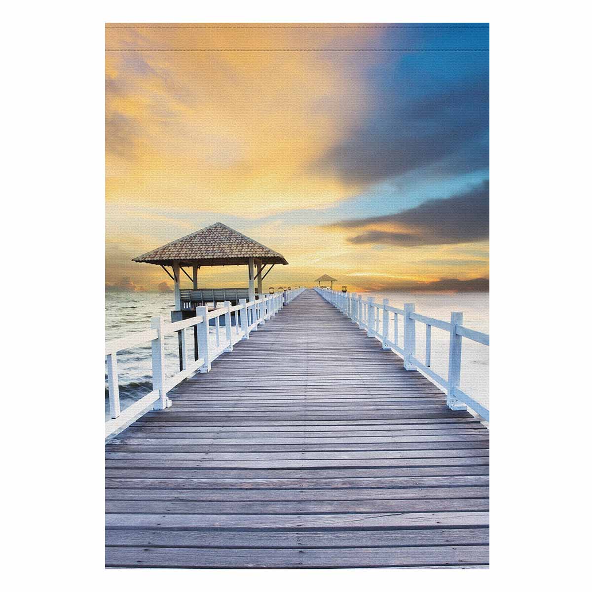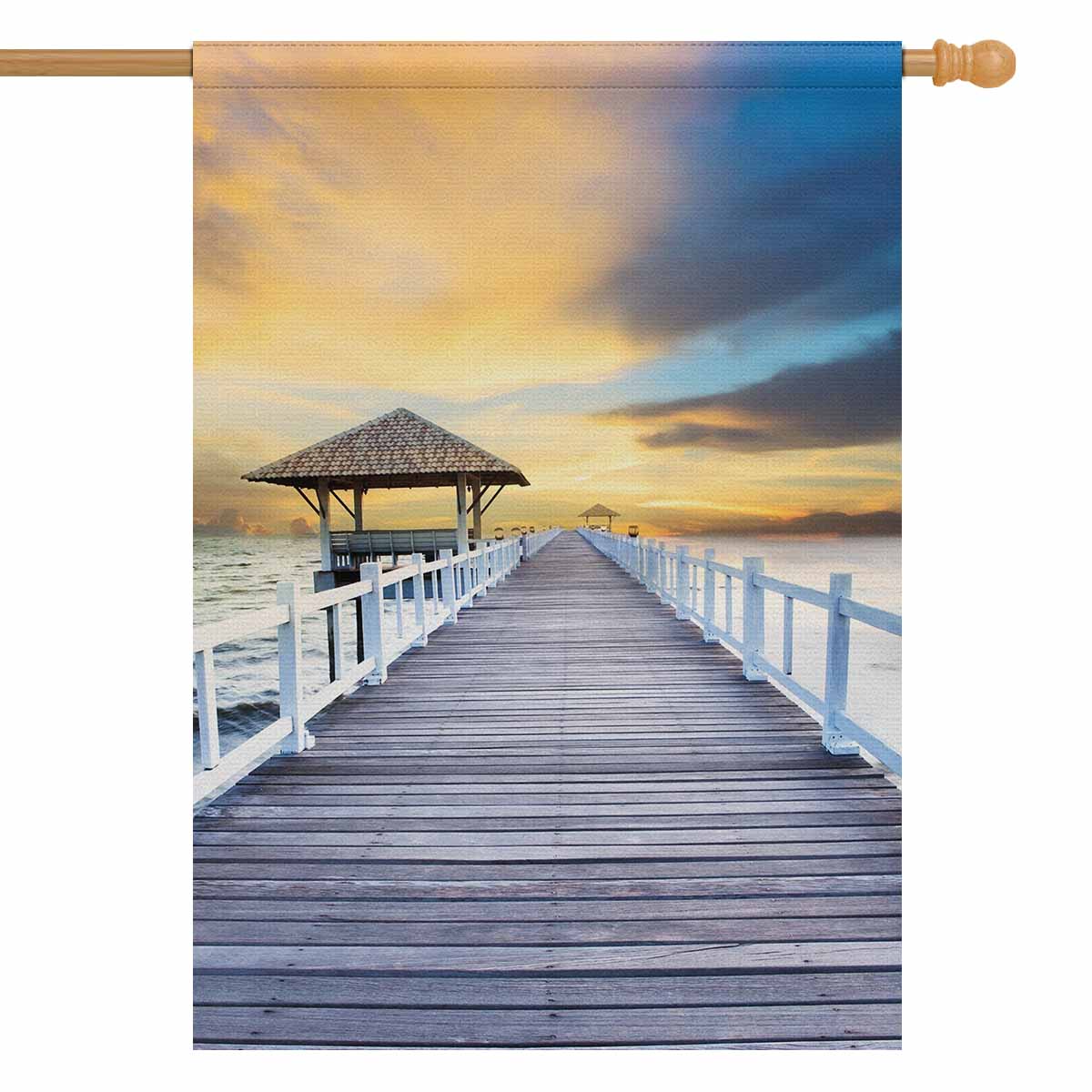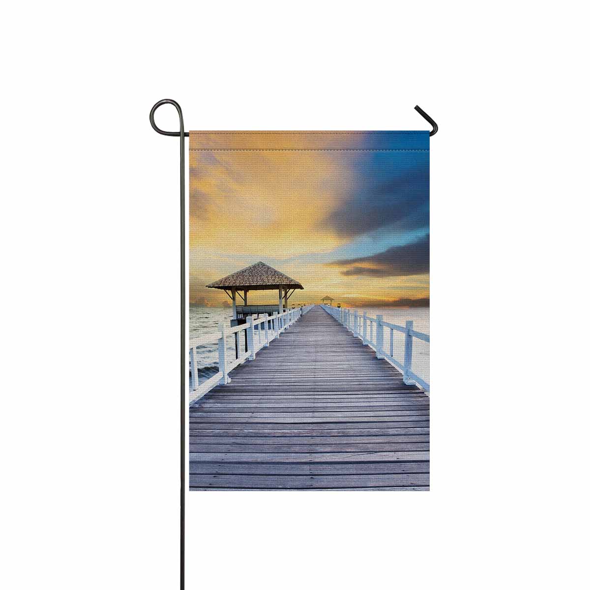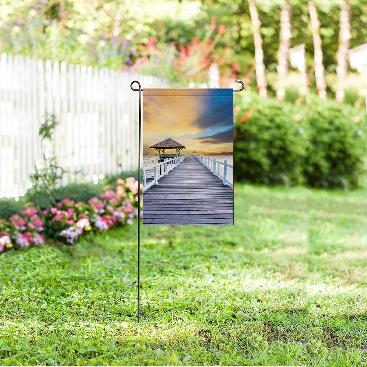 Garden Flags printed Nature Landscape themed with Wood piers and sea scene with dusky sky