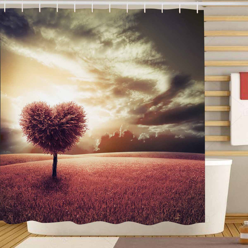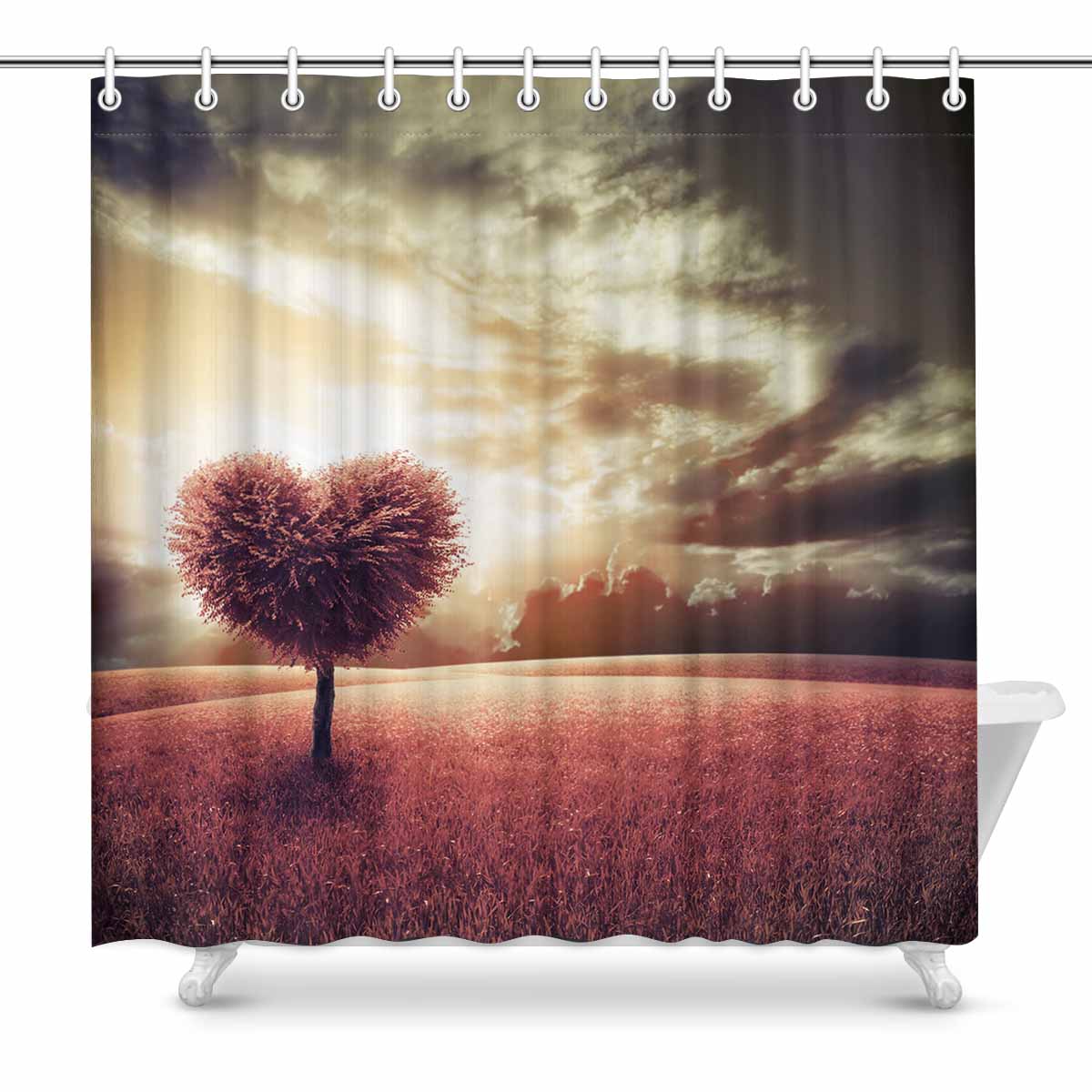 Nature Landscape themed Shower Curtains print Abstract field with heart shape tree under blue sky