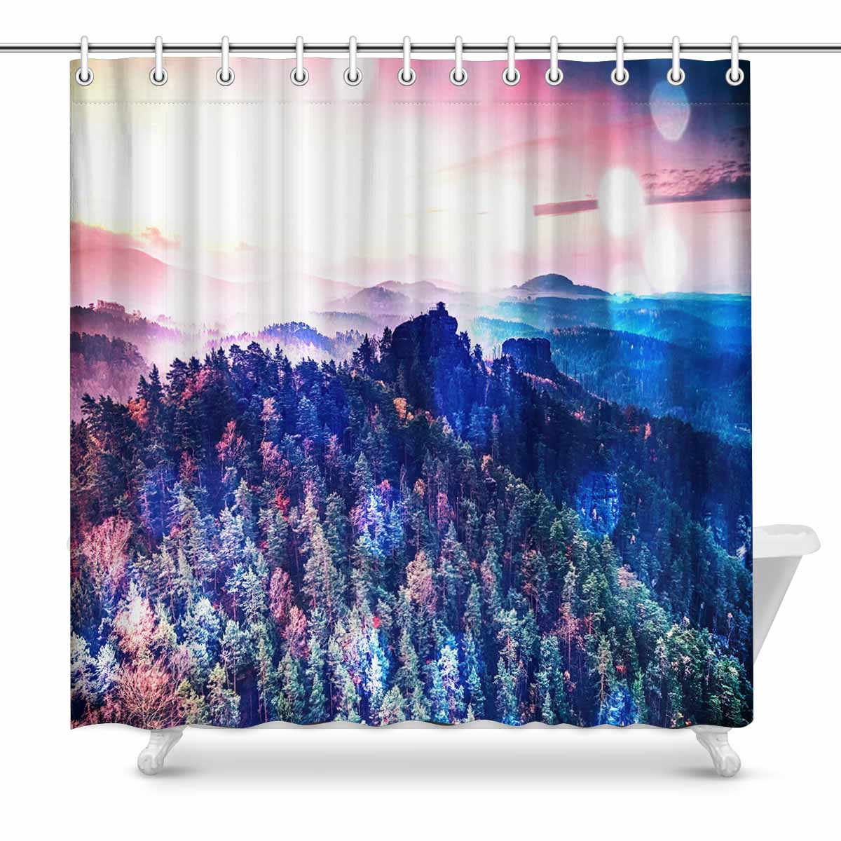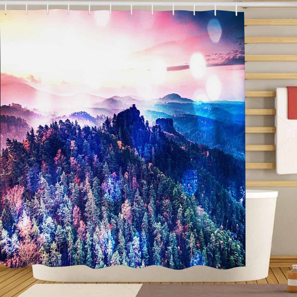 Nature Landscape themed print on shower curtains for bathroom, create a brilliant atmosphere in your bathroom, include a selection of different stylish and custom-made designs for your bath decoration.