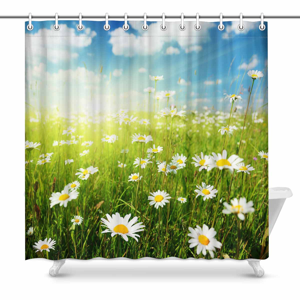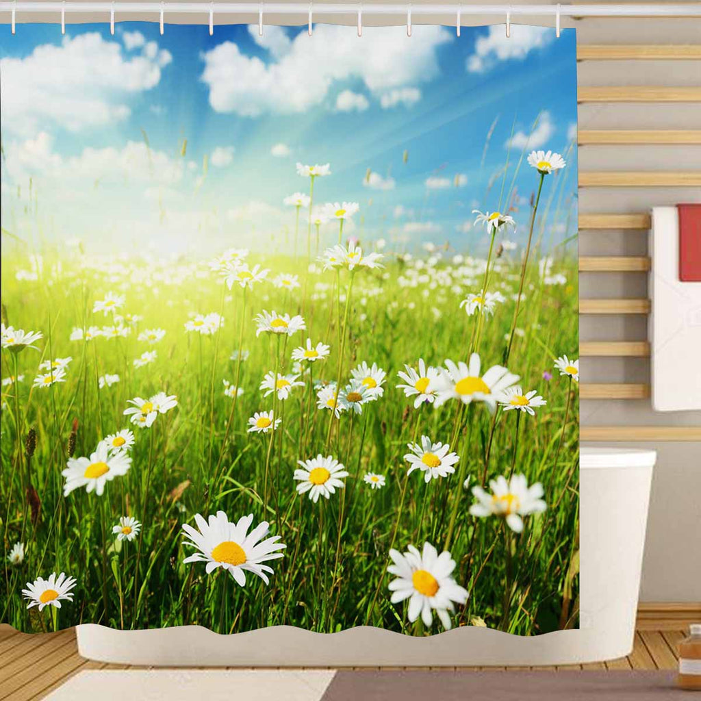 Nature Landscape themed Shower Curtains print field of daisy flowers