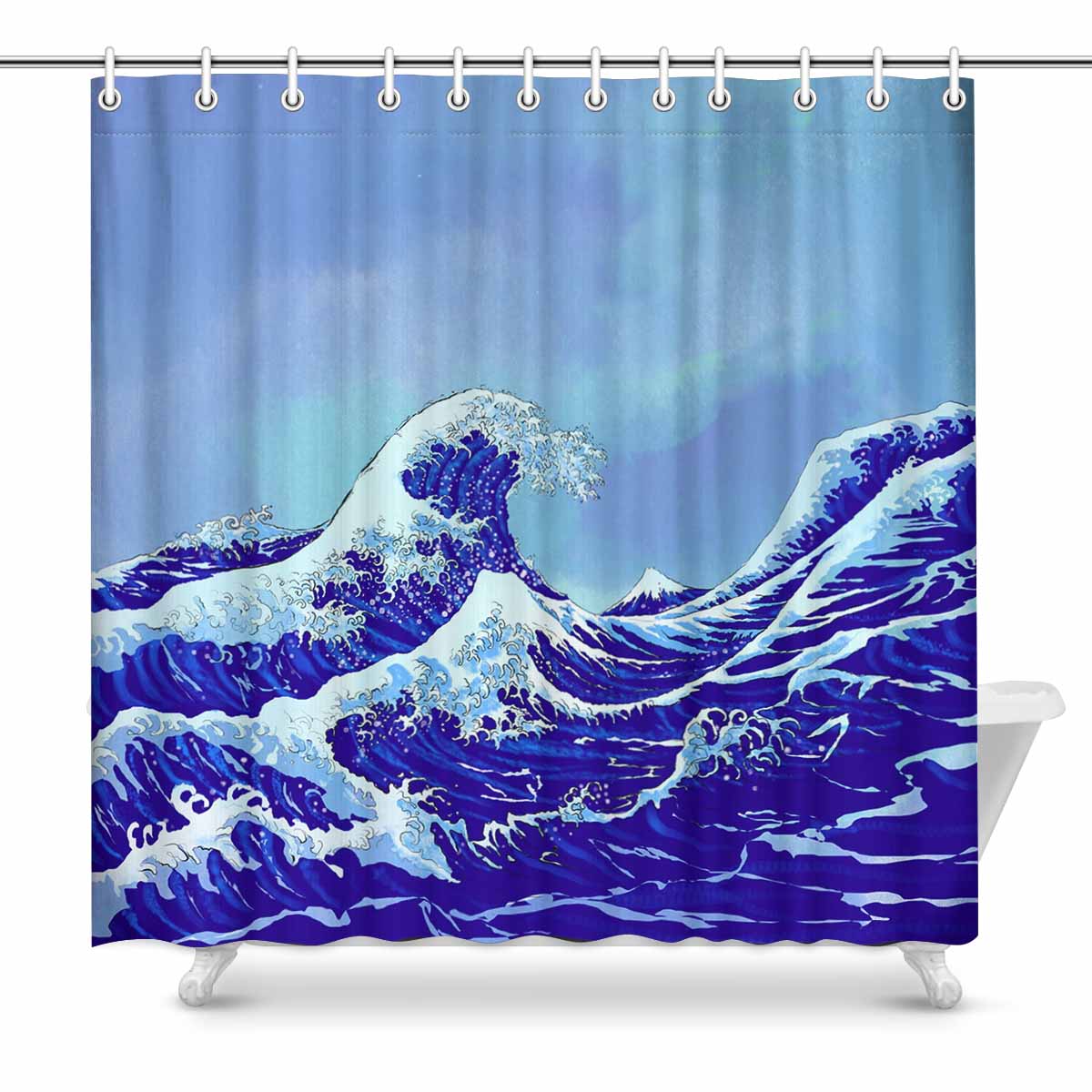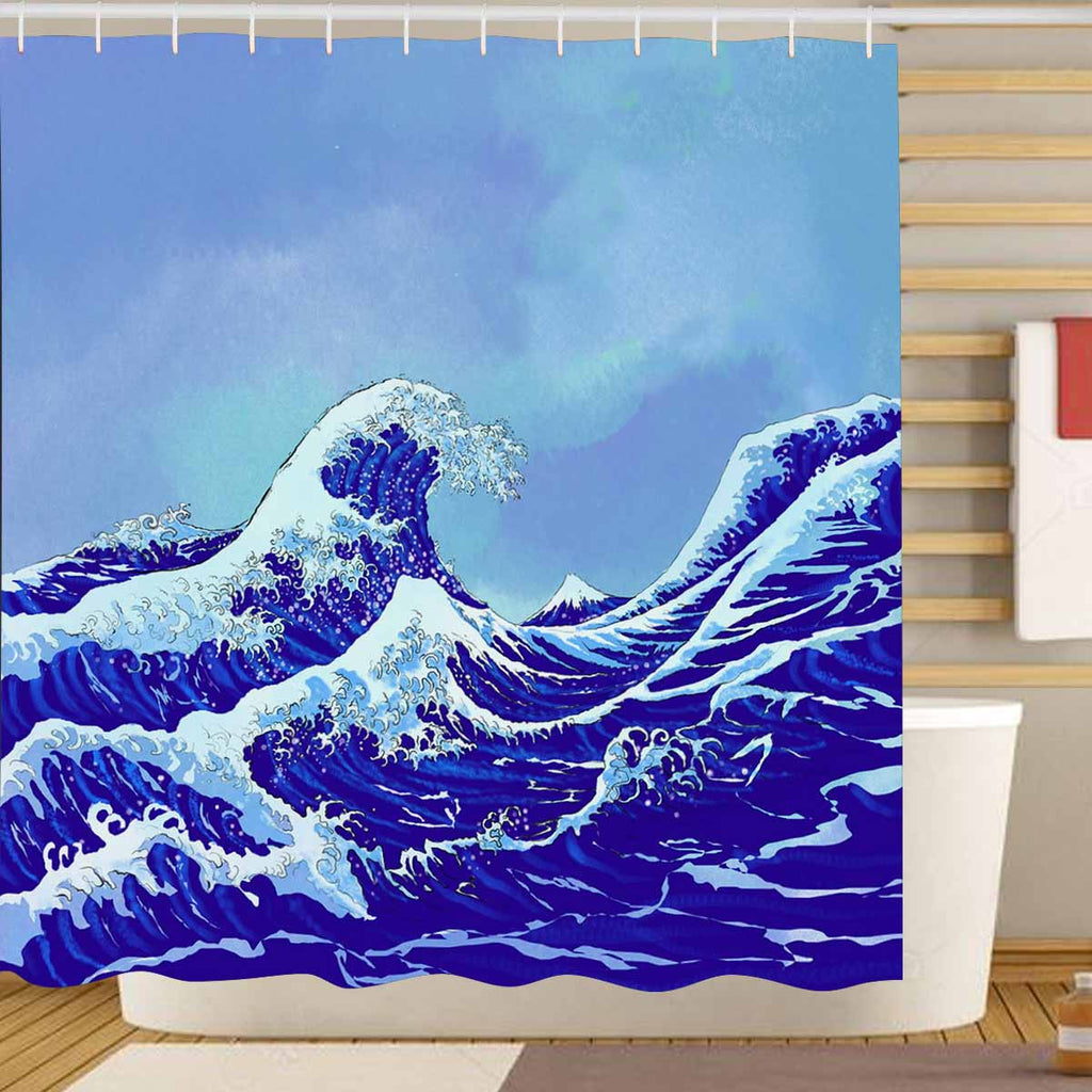 Nature Landscape themed Shower Curtains print Japanese sea waves with blue sky