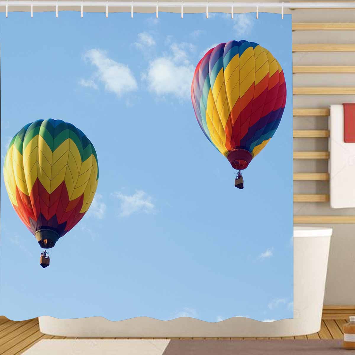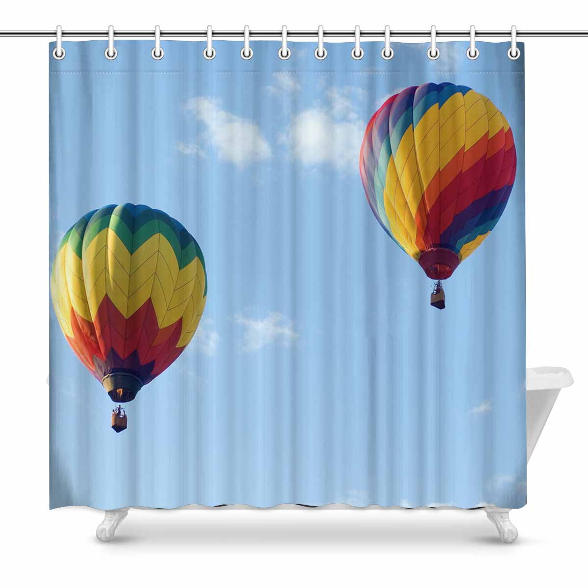Nature Landscape themed Shower Curtains print Looking upwards at colorful hot air balloons
