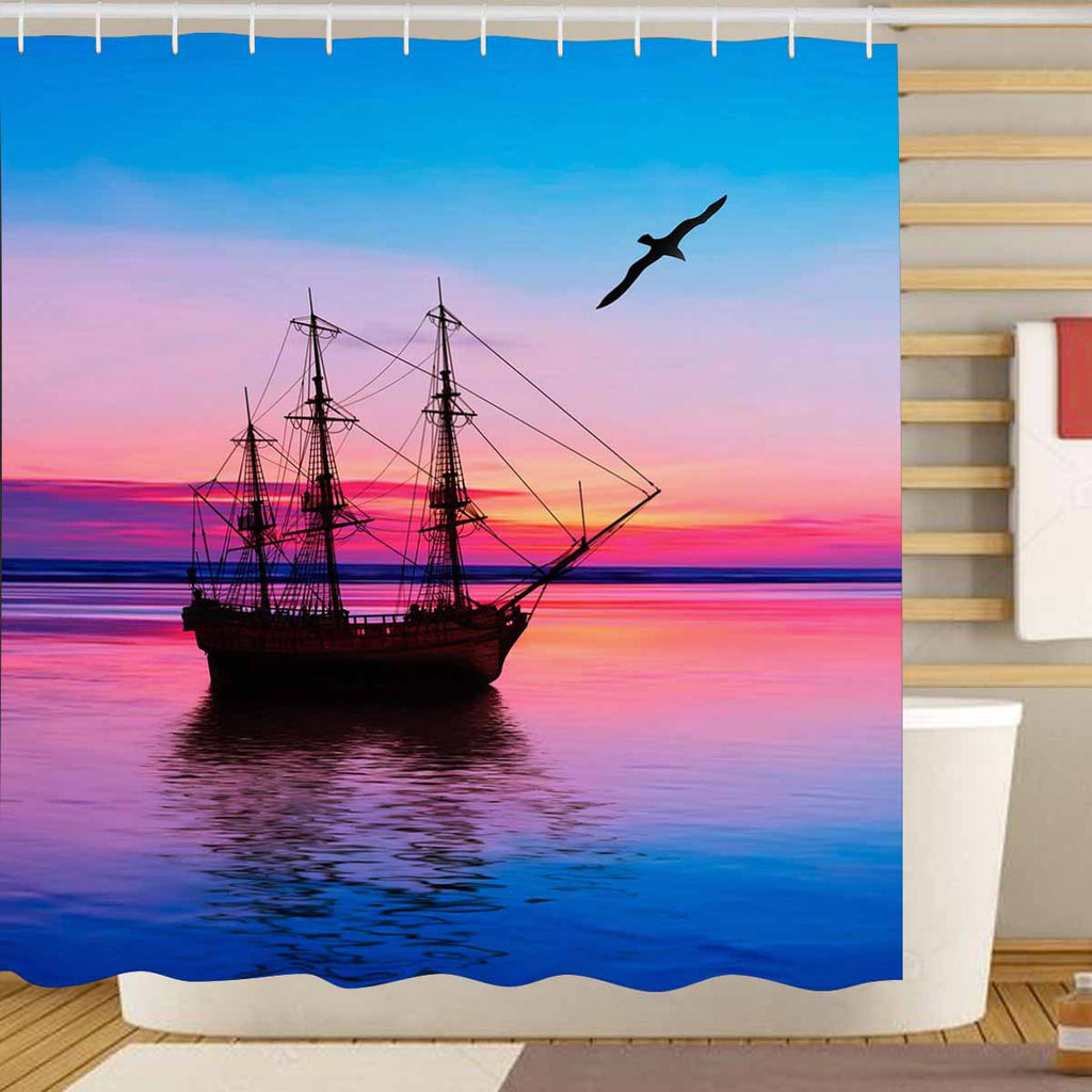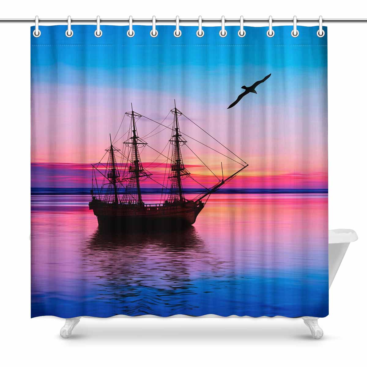 Nature Landscape themed Shower Curtains print Sailboat and bird