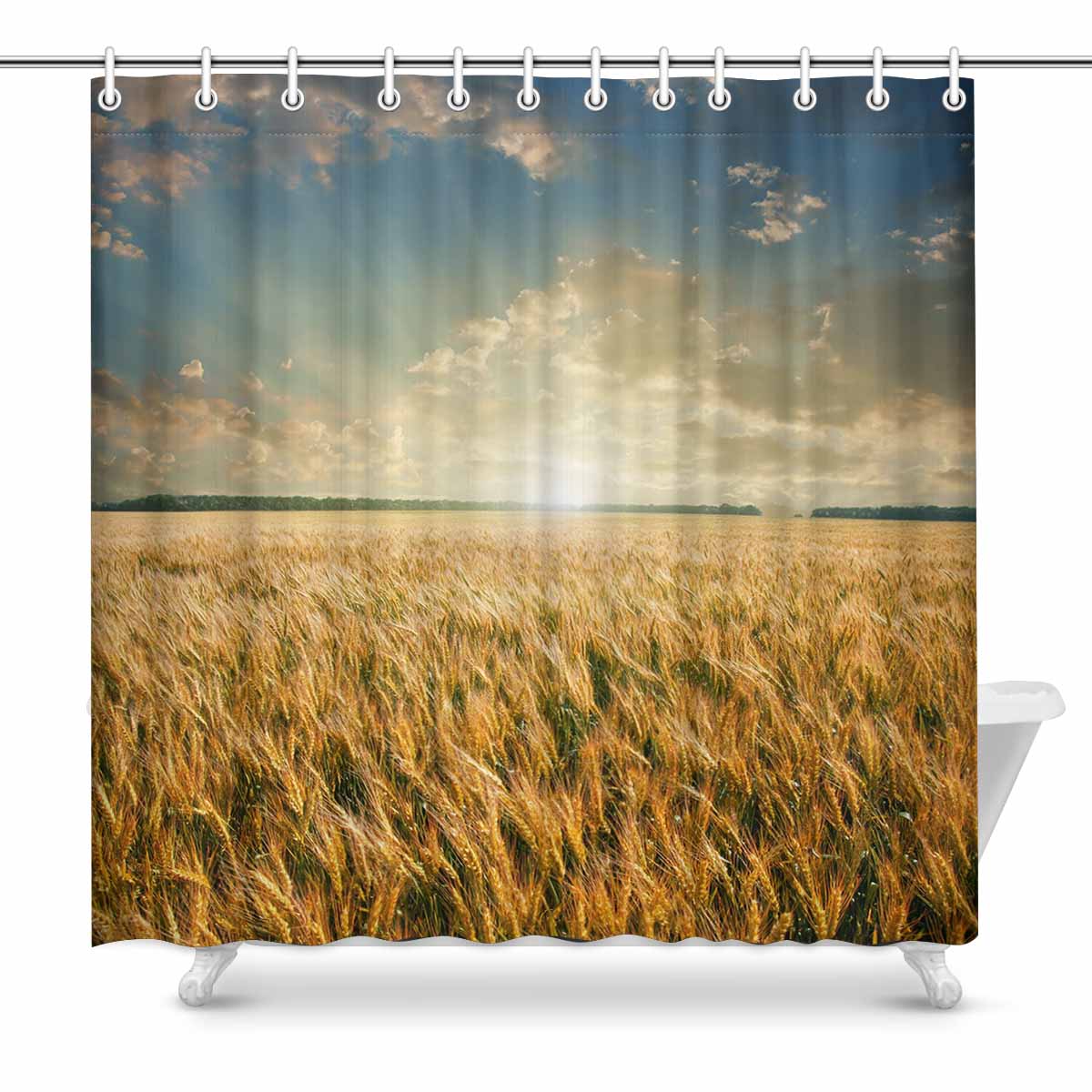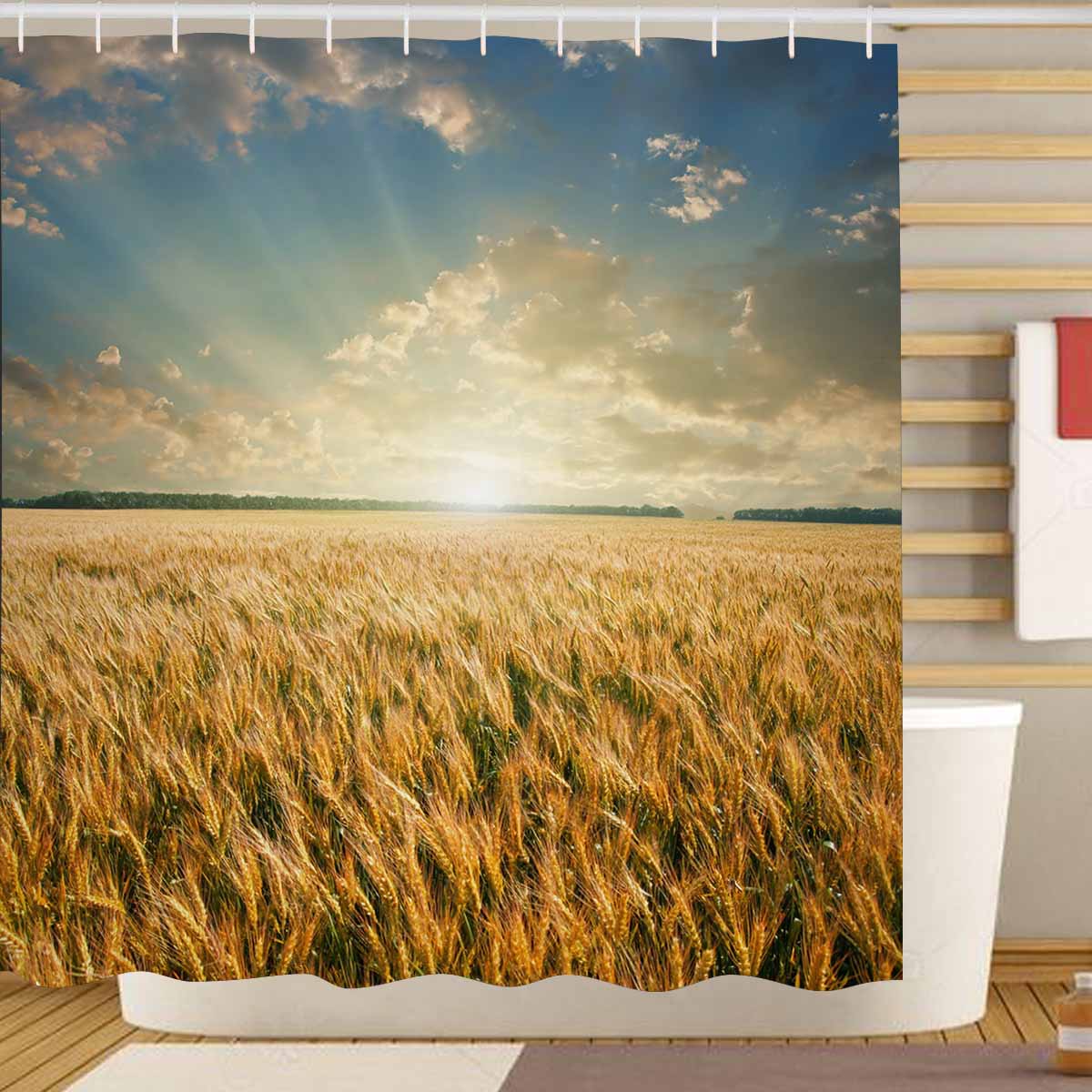 Nature Landscape themed Shower Curtains print Wheat field on sunset
