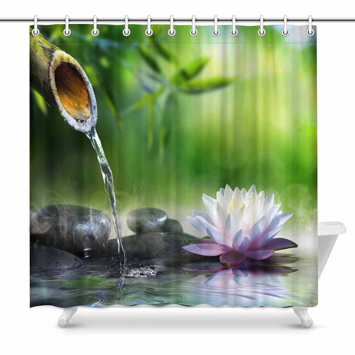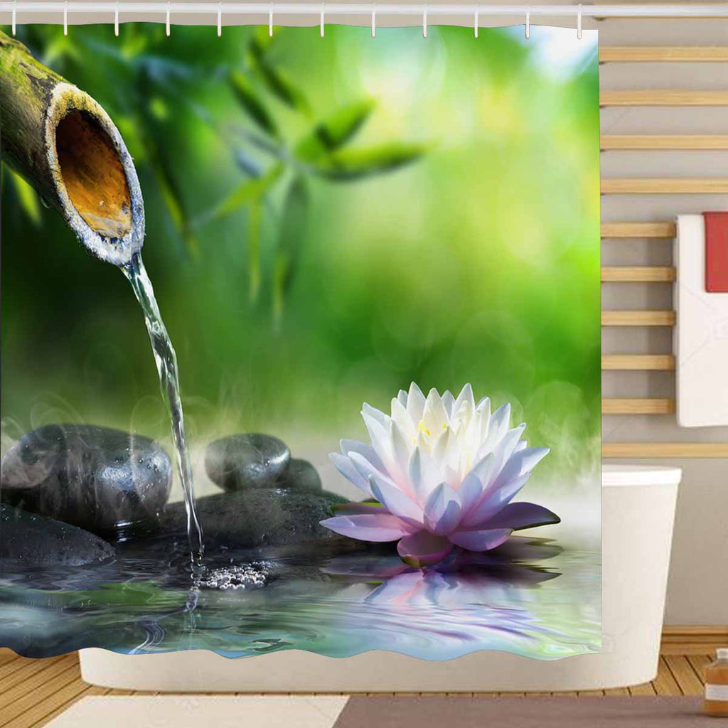 Nature Landscape themed Shower Curtains print Zen garden with massage stones and waterlily