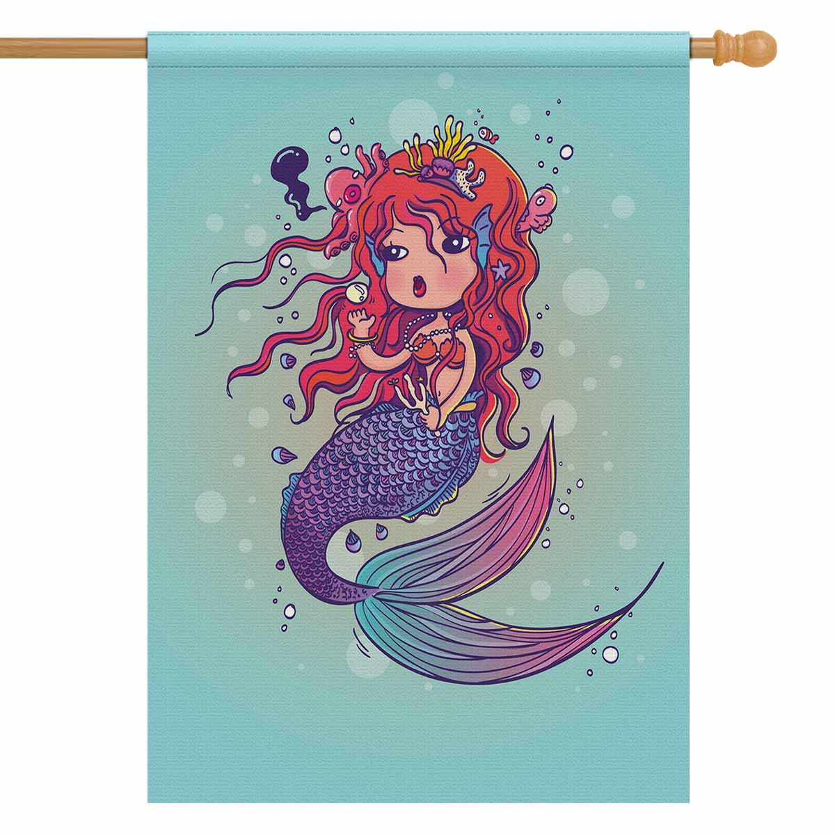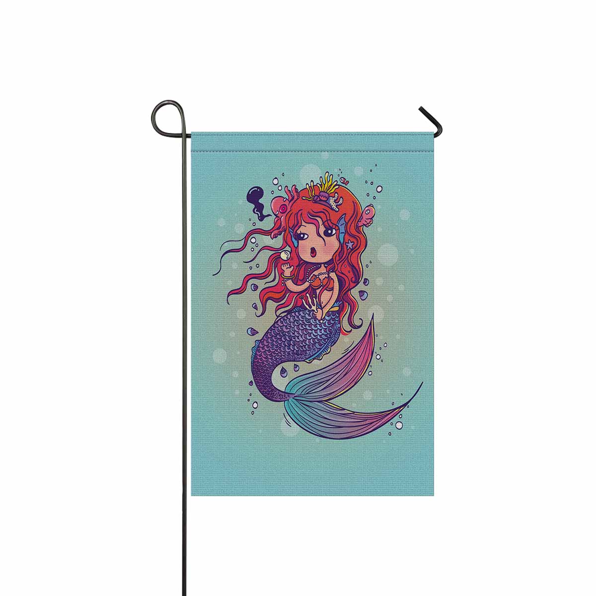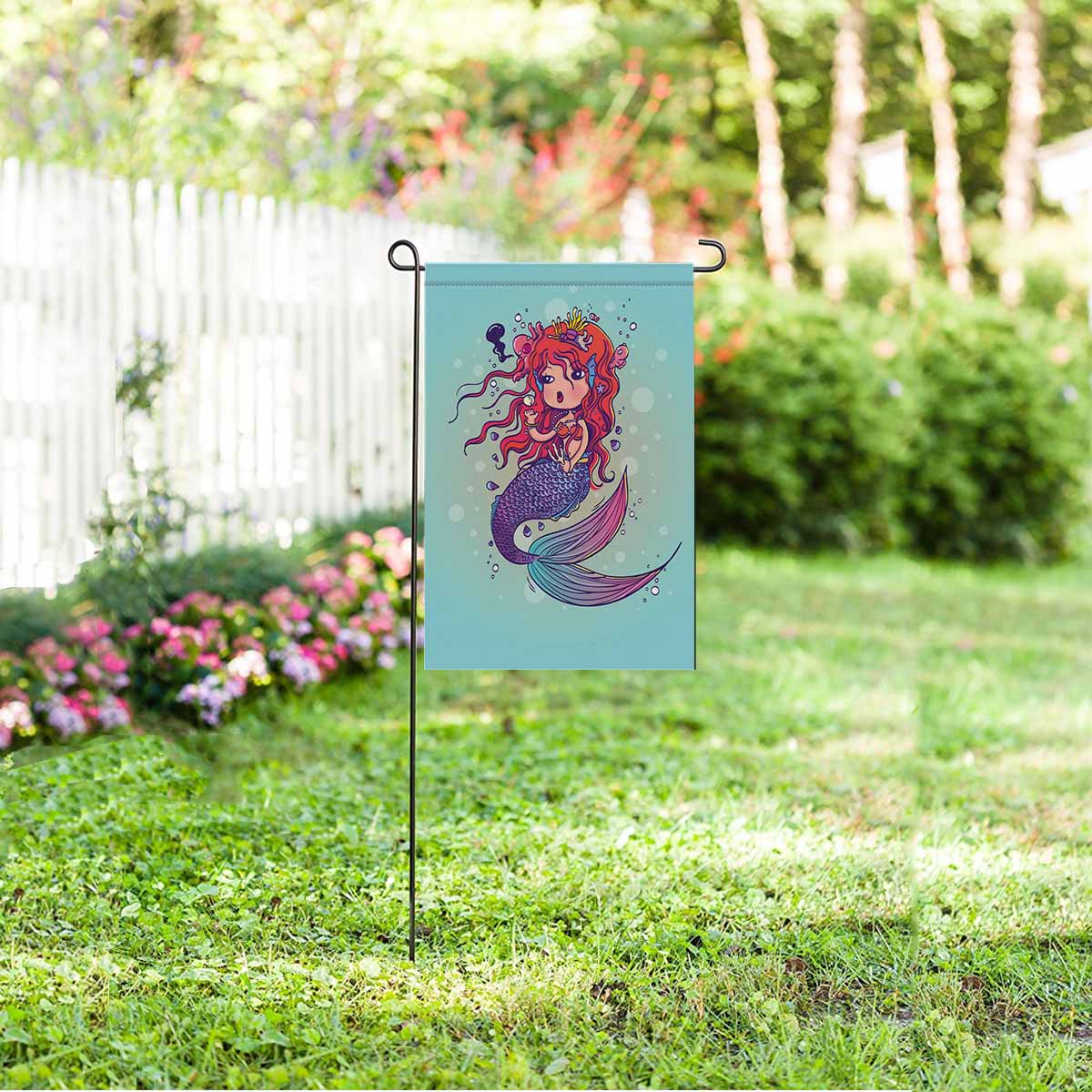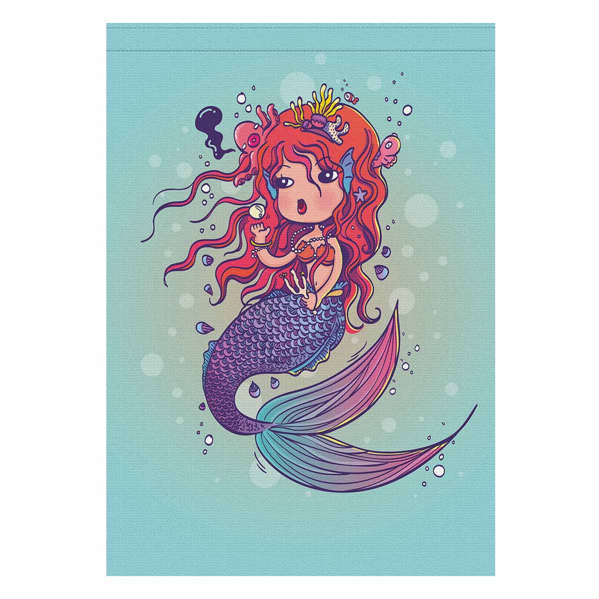 Garden Flags printed Nautical Mermaid themed with Doodle Mermaid Under the Sea Cartoon Character