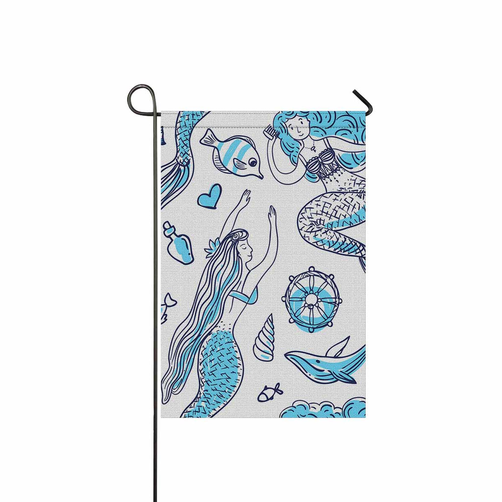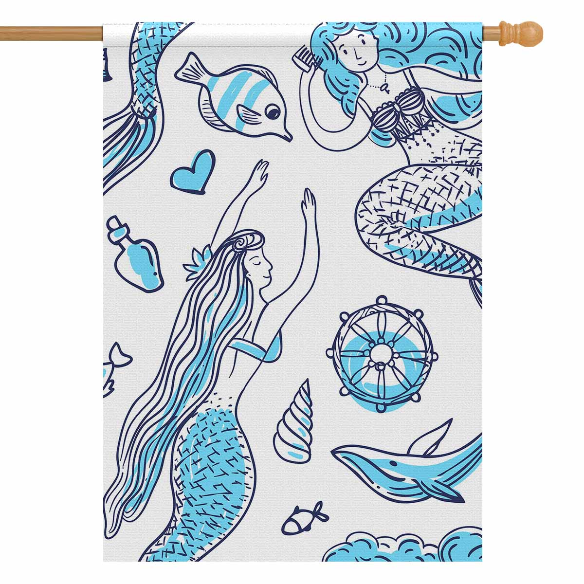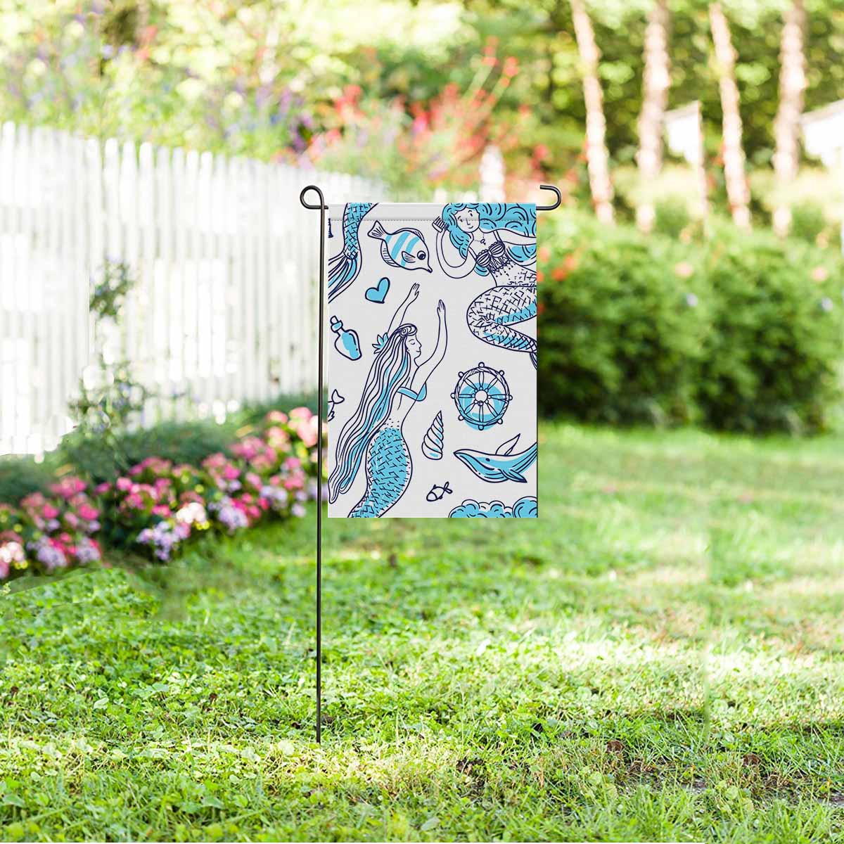 Garden Flags printed Nautical Mermaid themed with Hand drawn illustration mermaid.