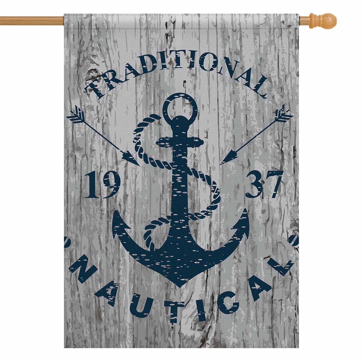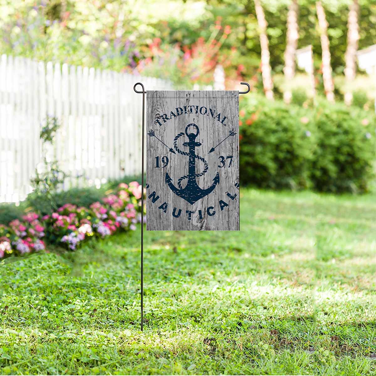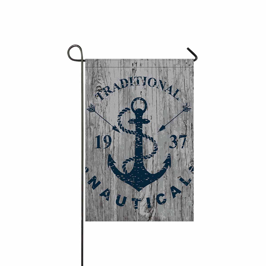 Garden Flags printed Nautical Mermaid themed with Nautical marine badge on wood backgroud