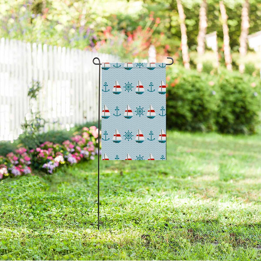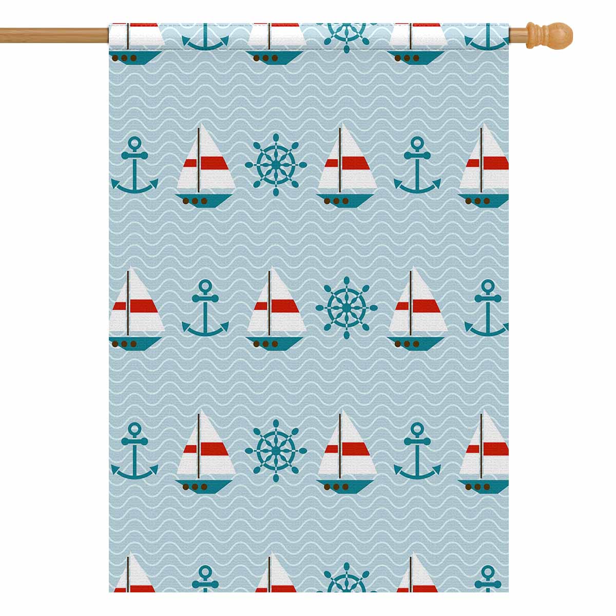 Garden Flags printed Nautical Mermaid themed with pattern of sailboats, anchors and steering wheels