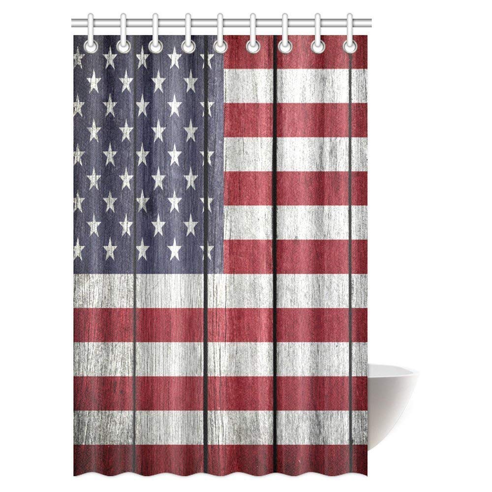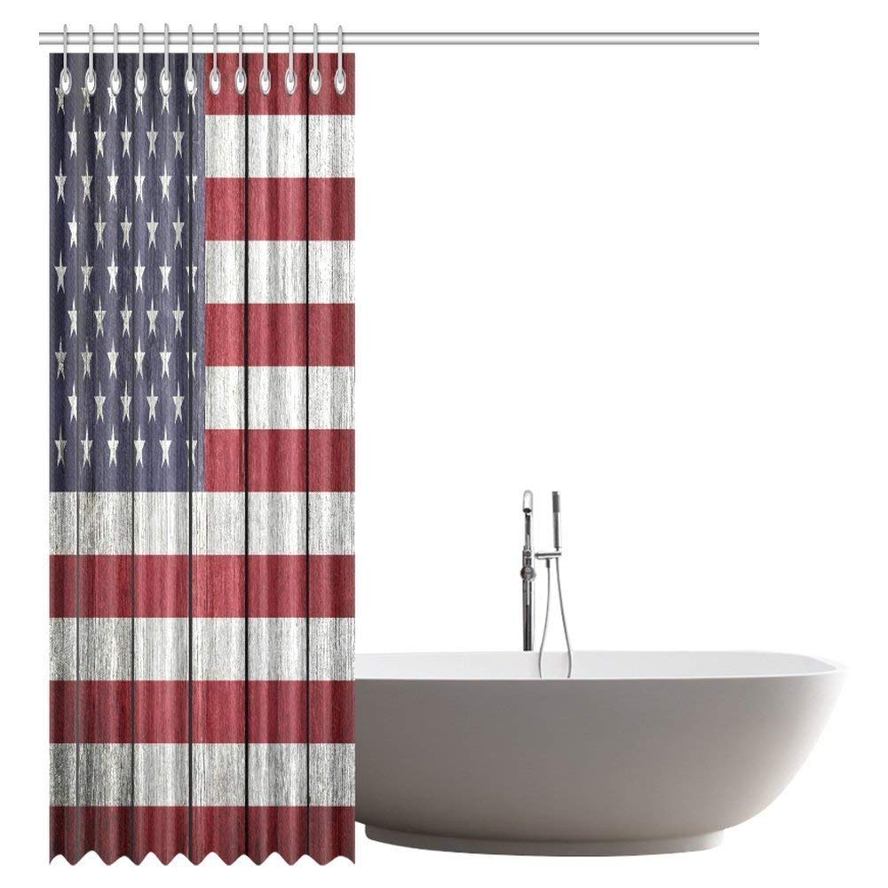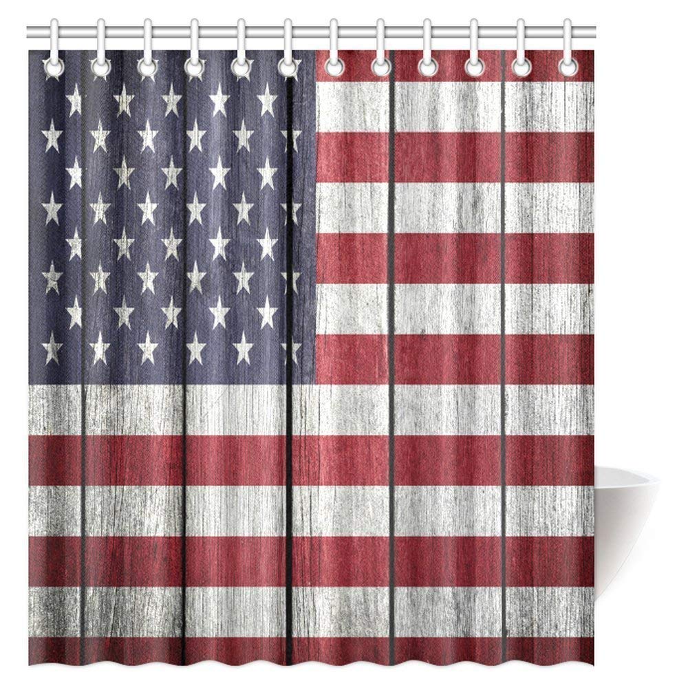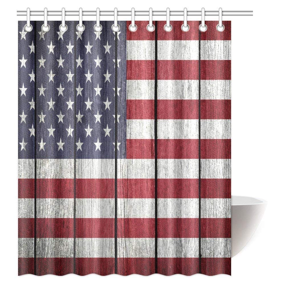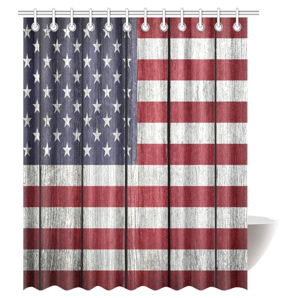 USA Flag Shower Curtain, United States of America Flag on Old Vintage Wood Fabric Bathroom Shower Curtain