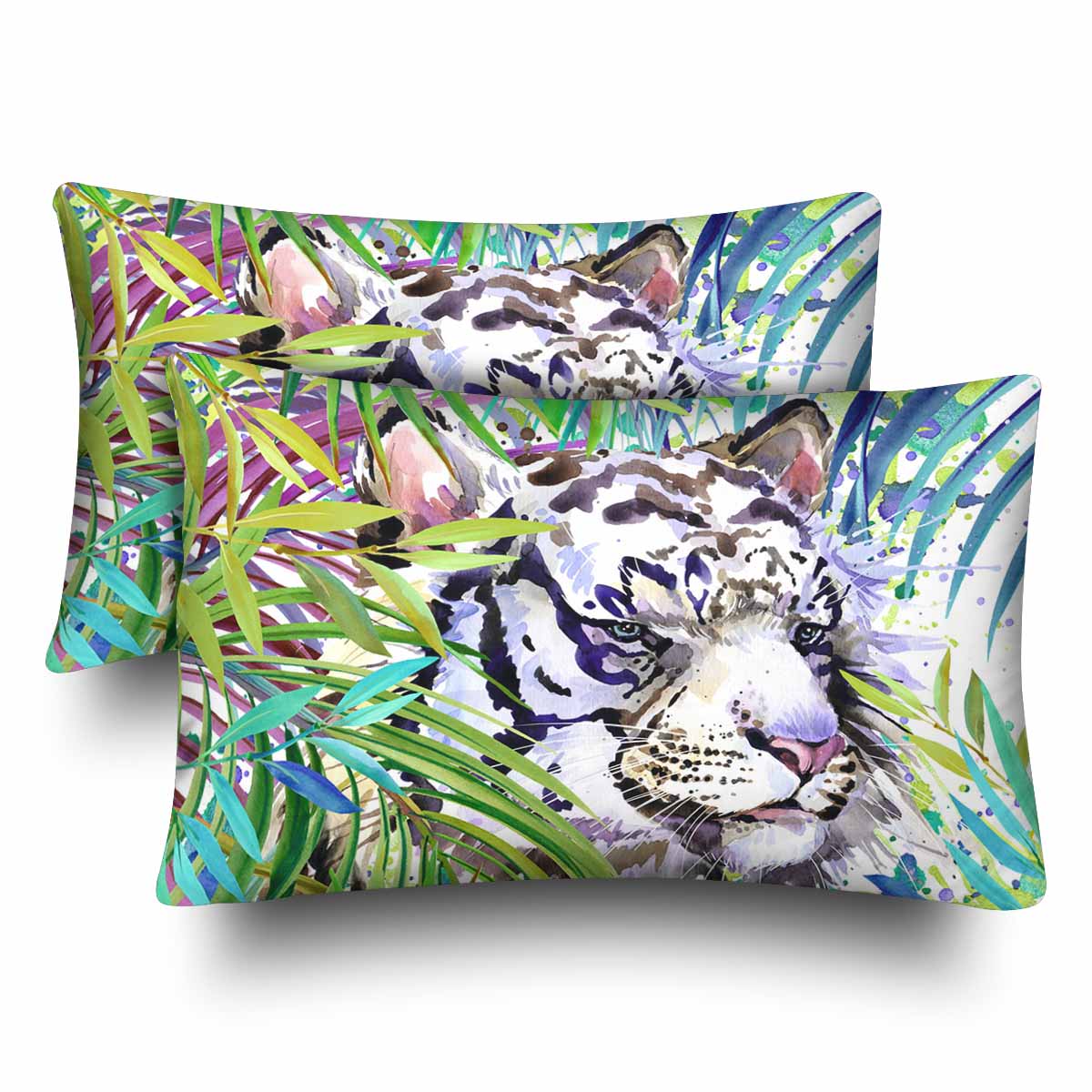 Animals themed Rectangle Pillow Cases printed Watercolor Tropical exotic forest