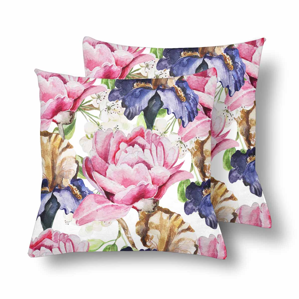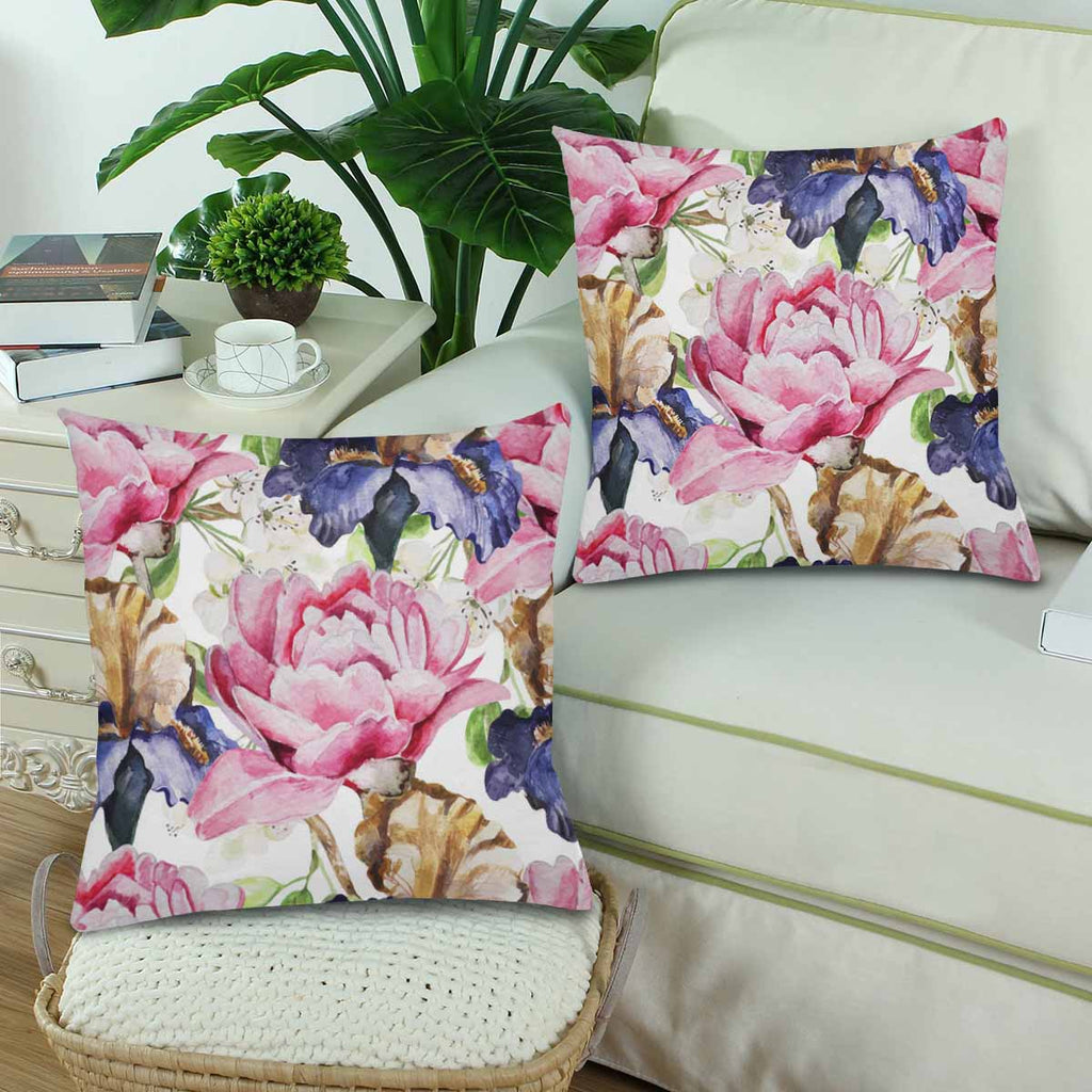 Floral themed Pillow Cases printed with watercolor flowers Iris Peonies