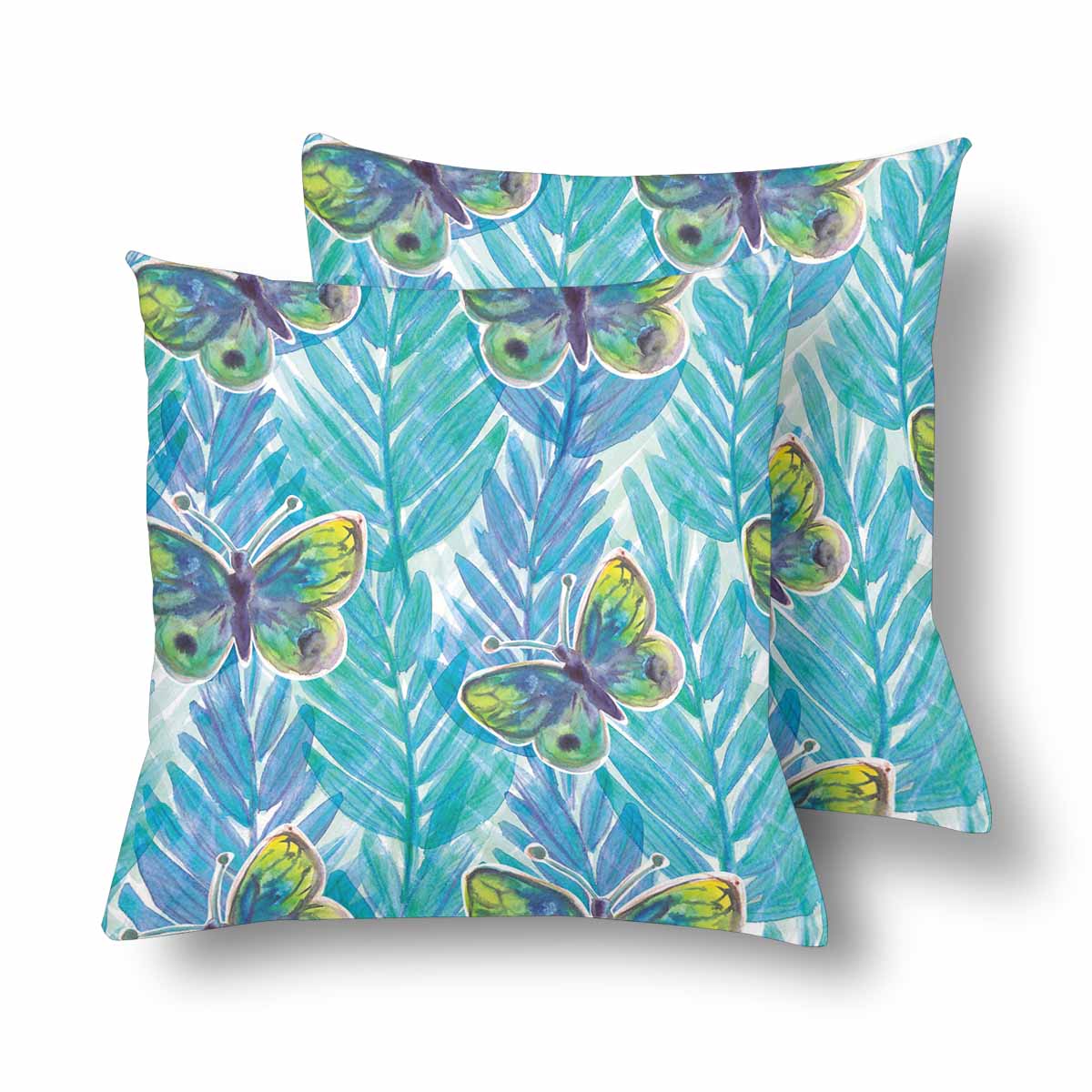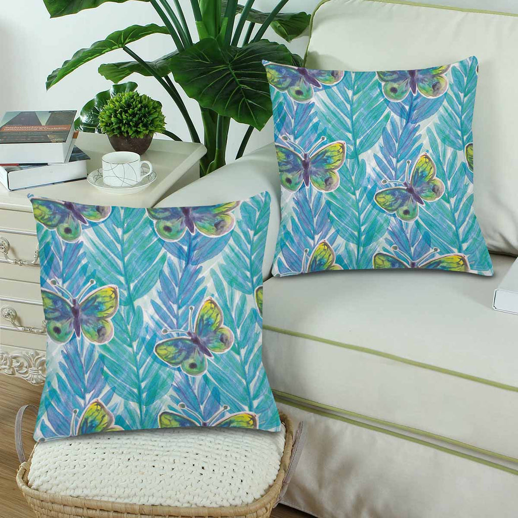 Floral themed Pillow Cases printed with Watercolor painted plants and butterflies