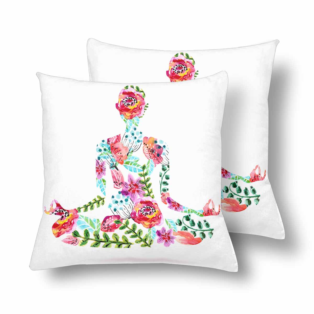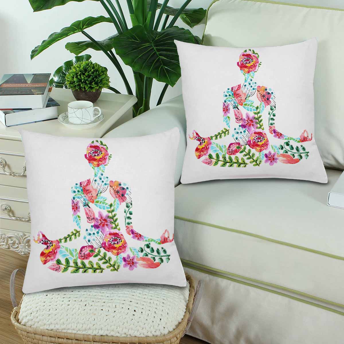 Mandala themed Pillow Cases printed with watercolor bright floral illustration yoga pose