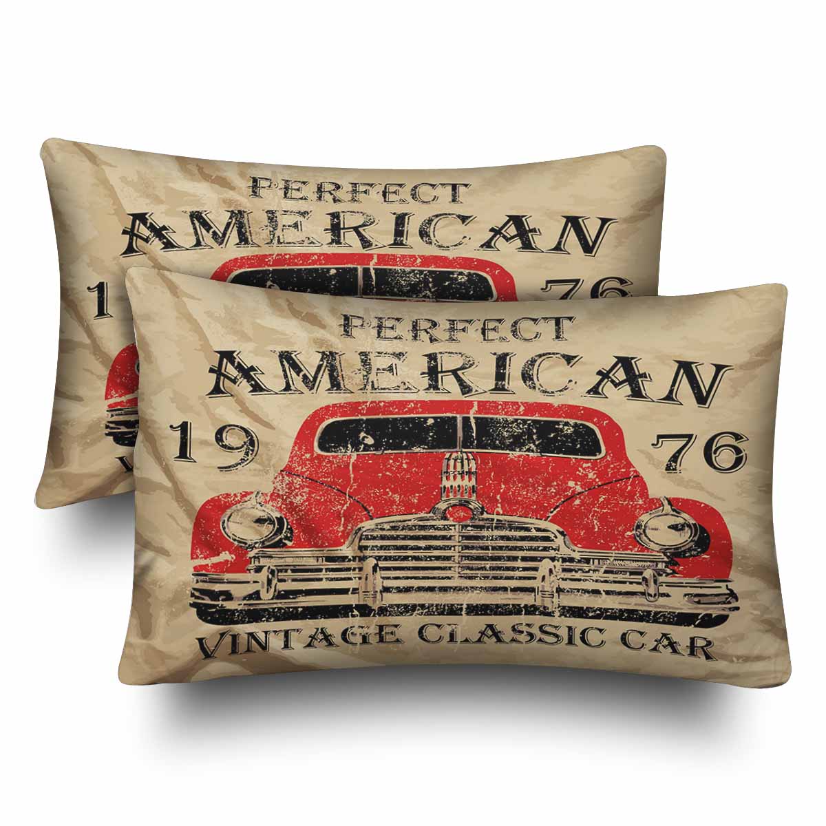Retro themed Rectangle Pillow Cases printed Vintage classic car pattern