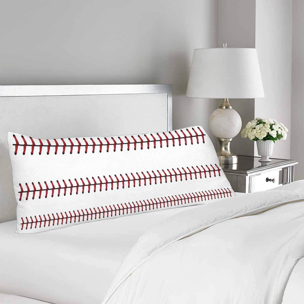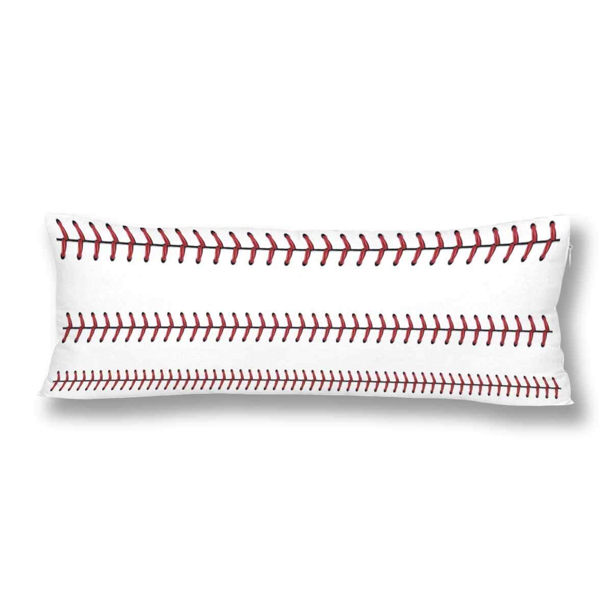 Softball Baseball Red Lace Body Pillow Covers Pillowcase with Zipper 21x60 Twin Sides, White Sport Rectangle Body Pillow Case Protector for Home Couch Sofa Bedding Decorative