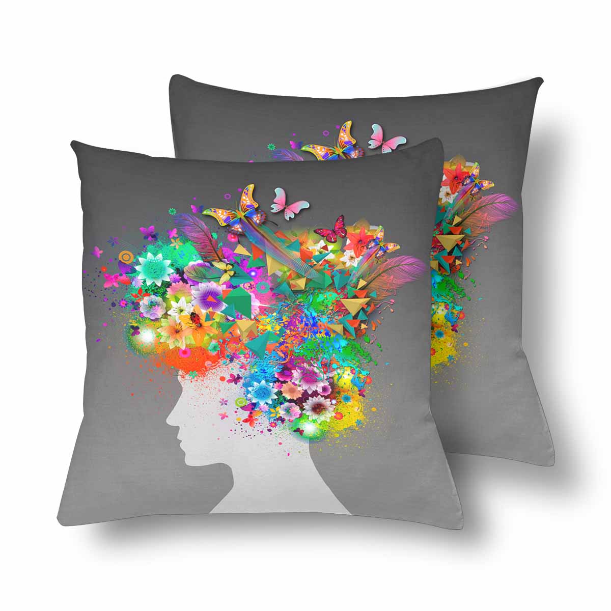 Vintage themed Pillow Cases printed with abstract Spring background with woman face