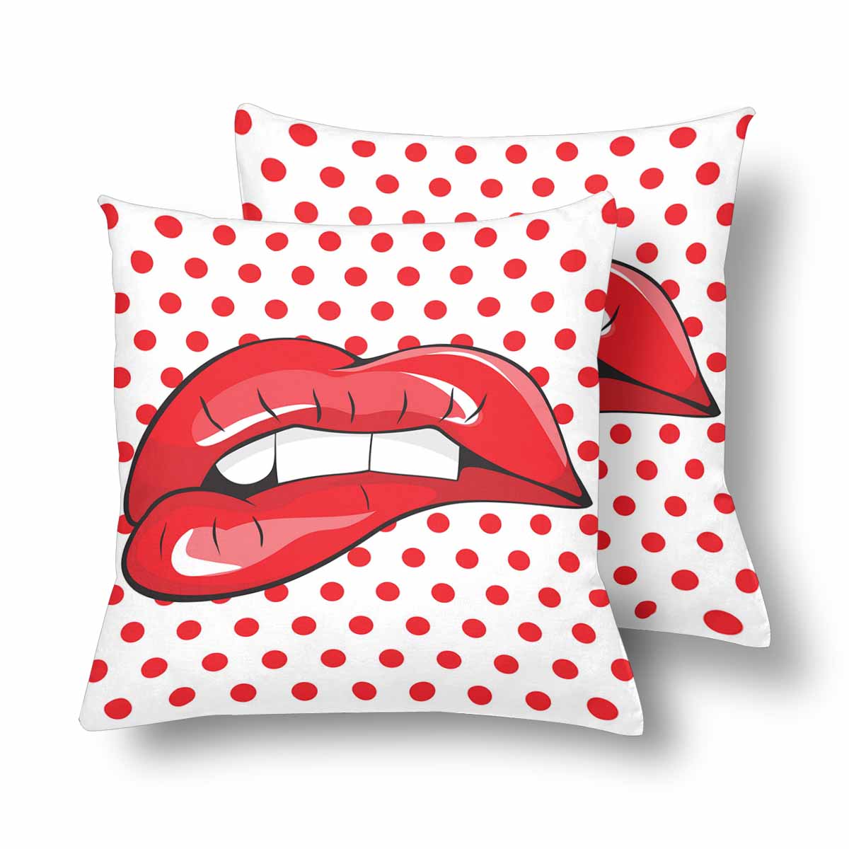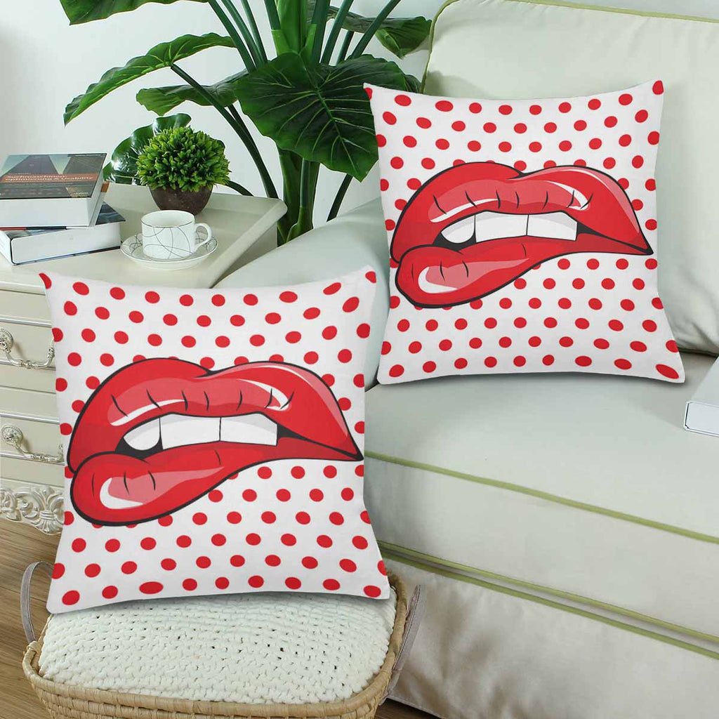 Vintage themed Pillow Cases printed with Biting her red lips teeth