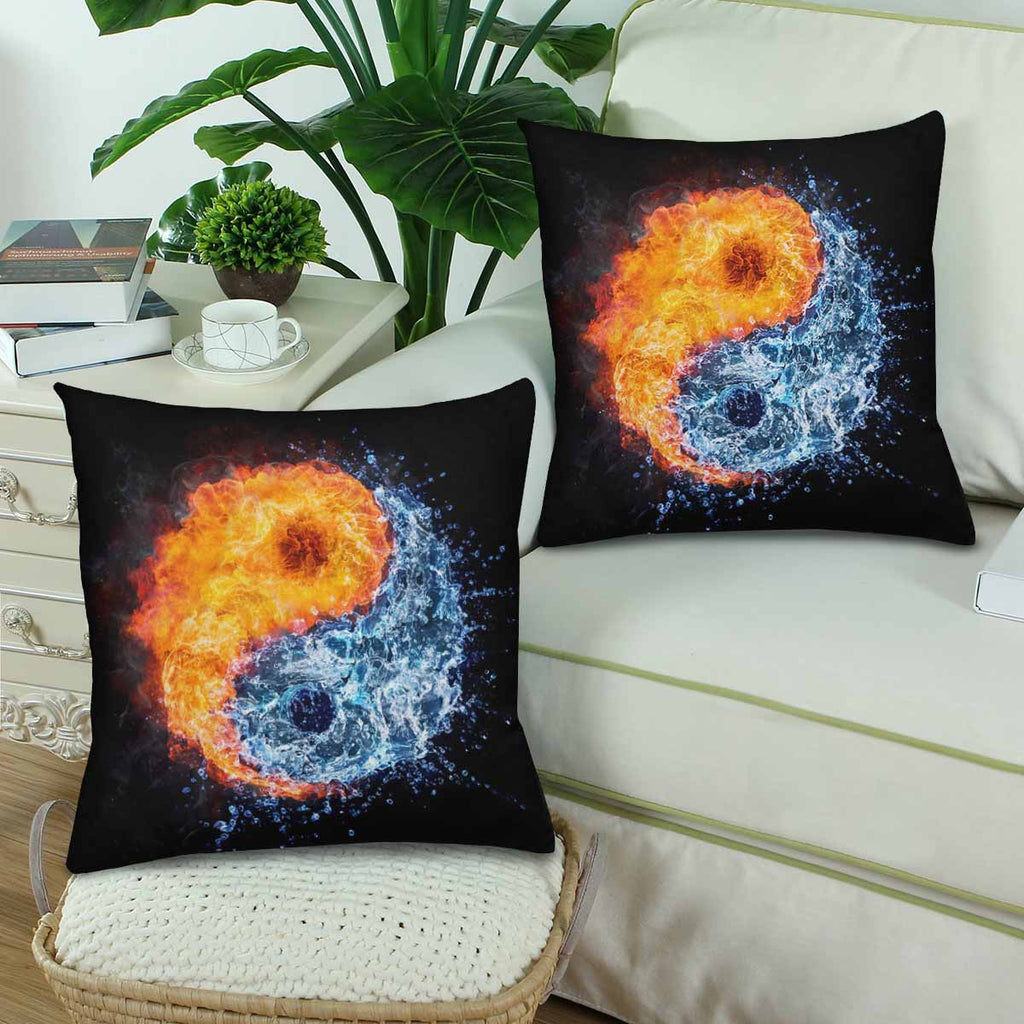 Vintage themed Pillow Cases printed with Fire and water in yin yang symbol
