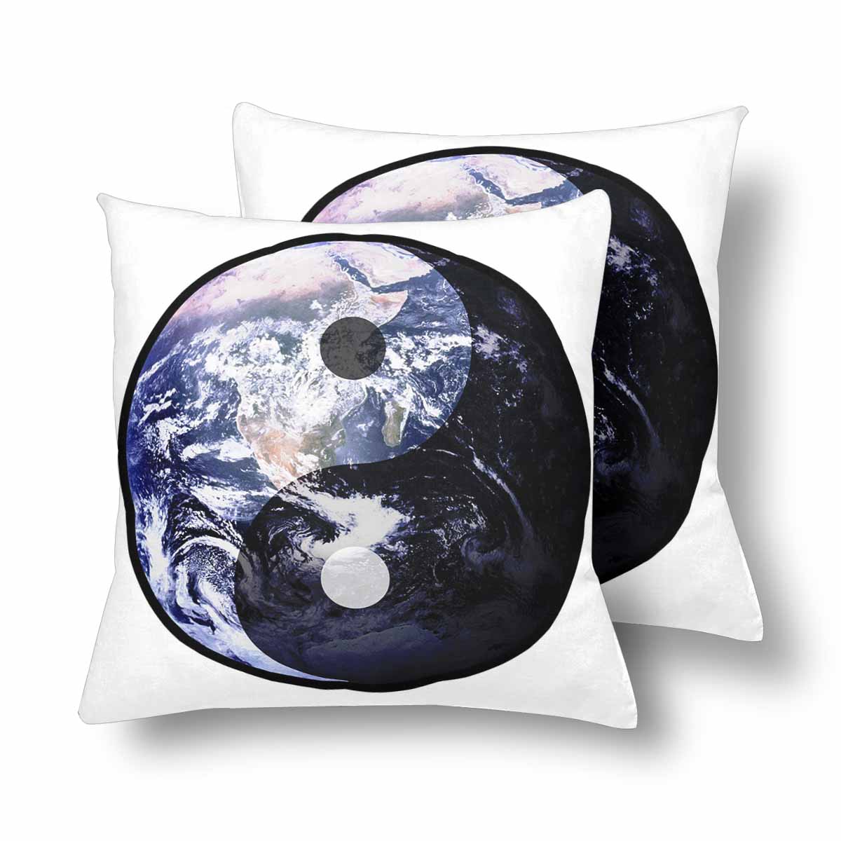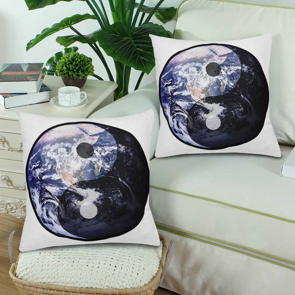 Vintage themed Pillow Cases printed with illustration of planet earth with yin yang symbol
