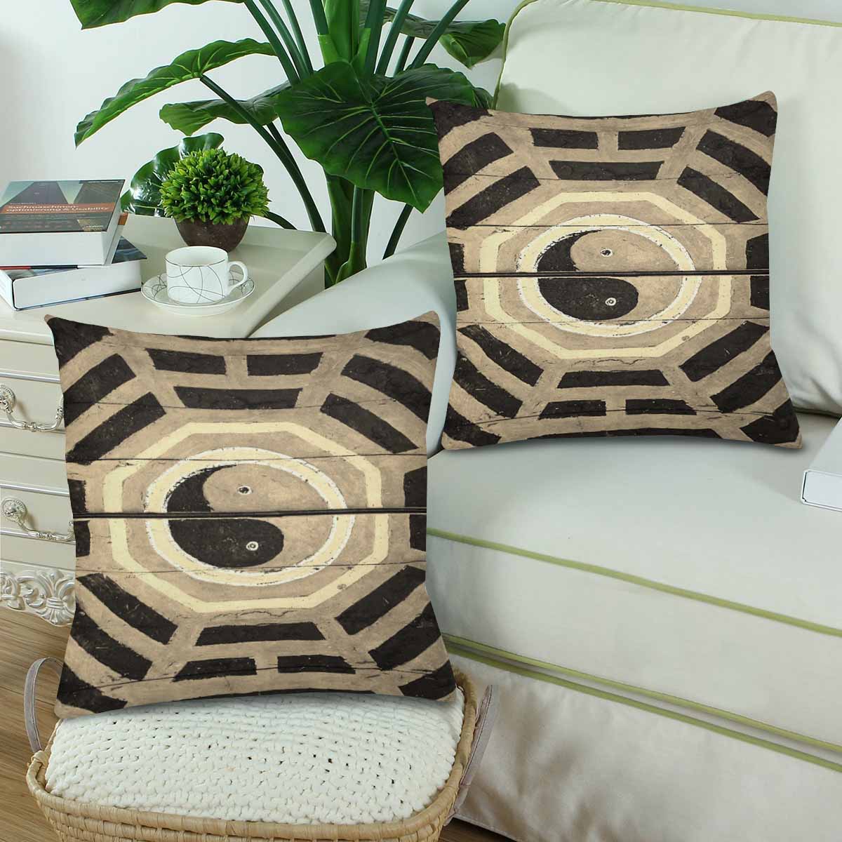 Vintage themed Pillow Cases printed with Taoism Yin Yang symbol