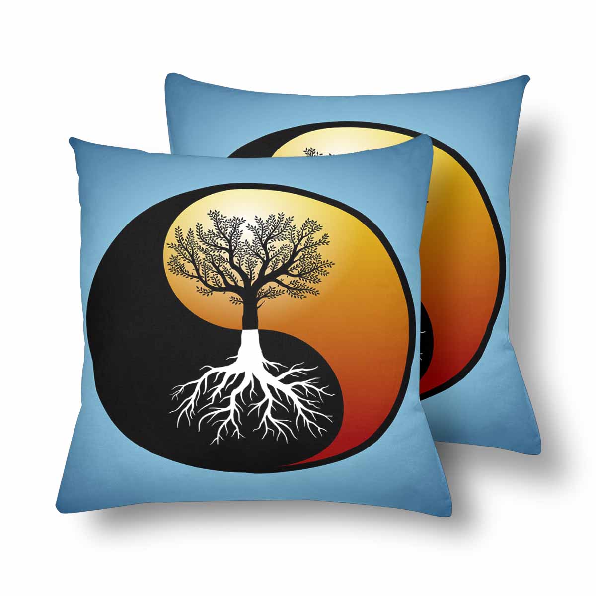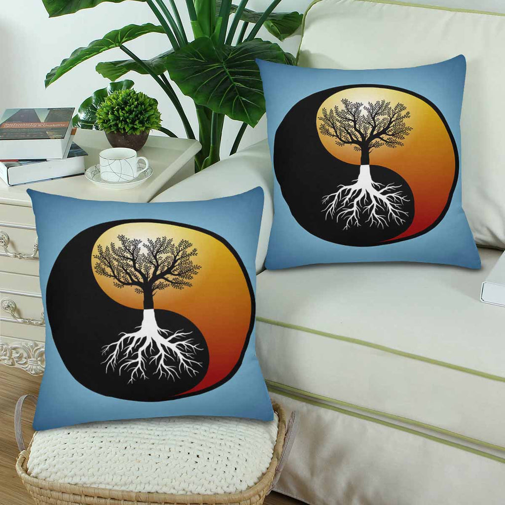 Vintage themed Pillow Cases printed with Tree and it's roots in yin yang symbol