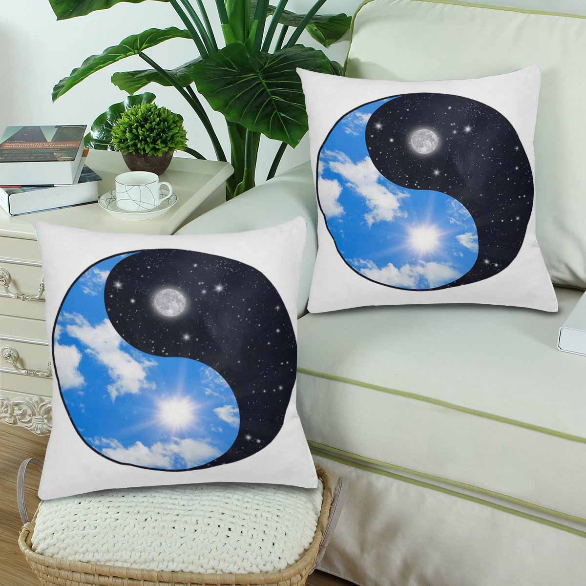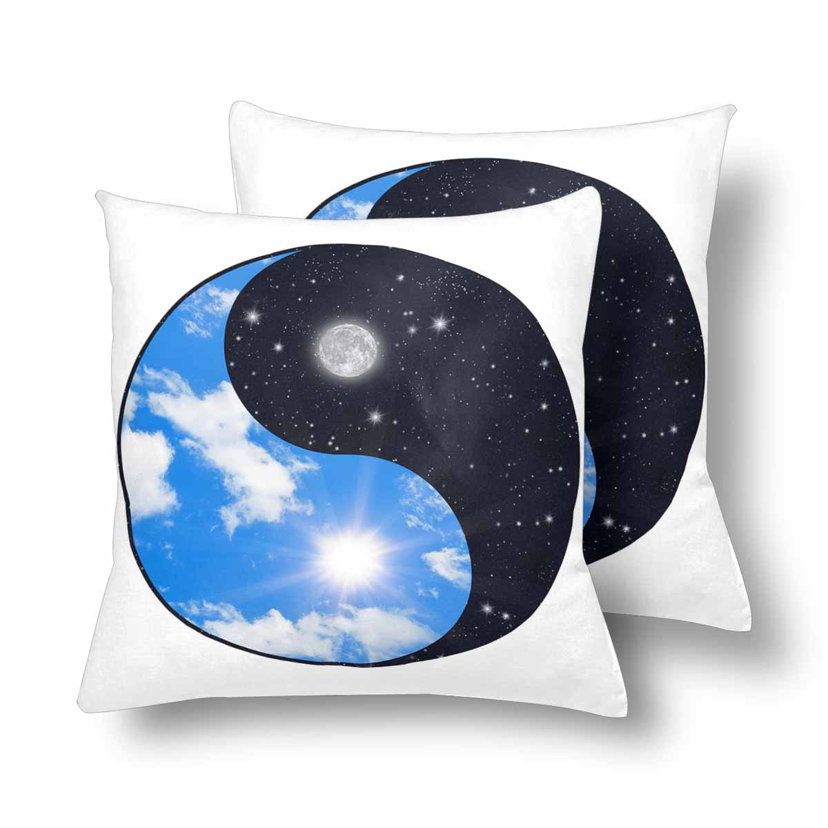 Vintage themed Pillow Cases printed with Yin yang symbol Day and Night