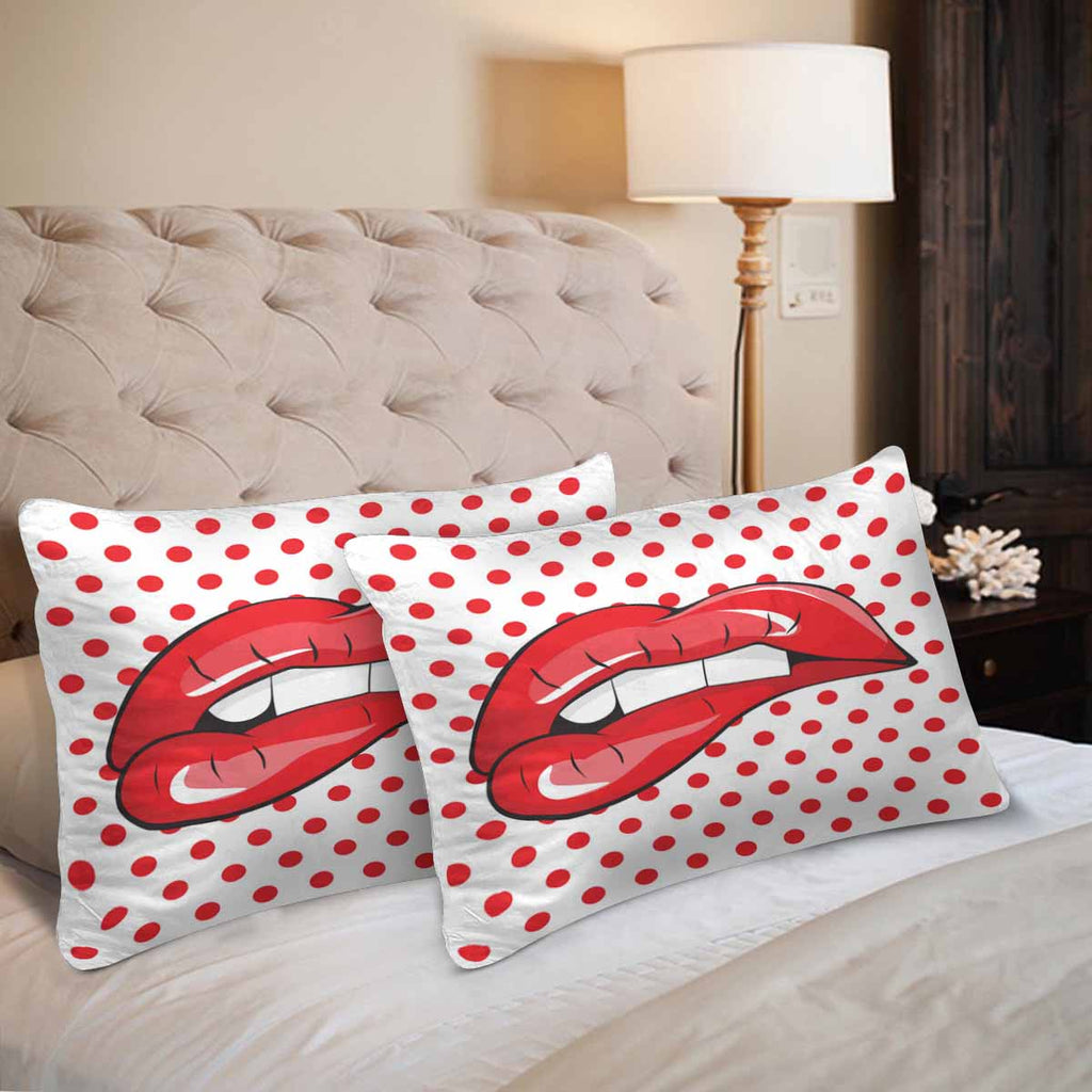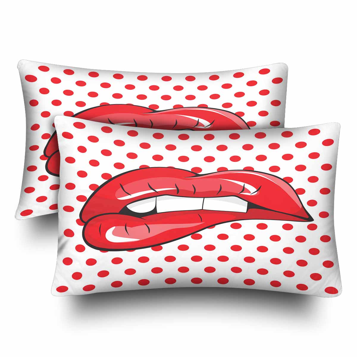 Vintage themed Rectangle Pillow Cases printed Biting her red lips teeth