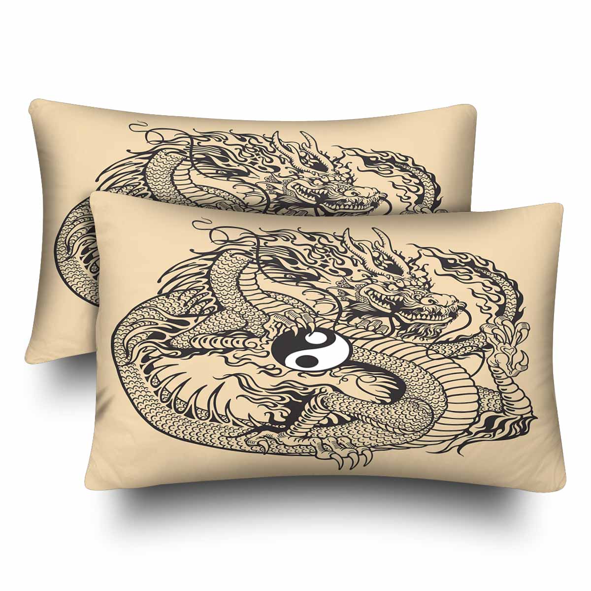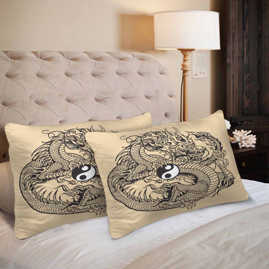 Vintage themed Rectangle Pillow Cases printed Dragon holding yin yang symbol