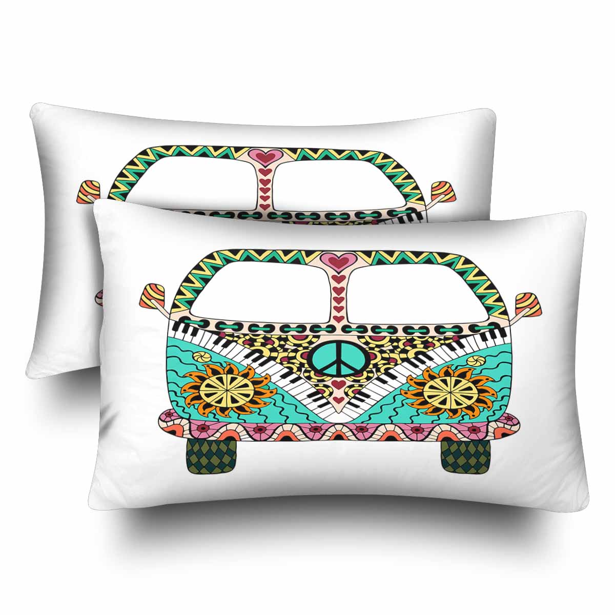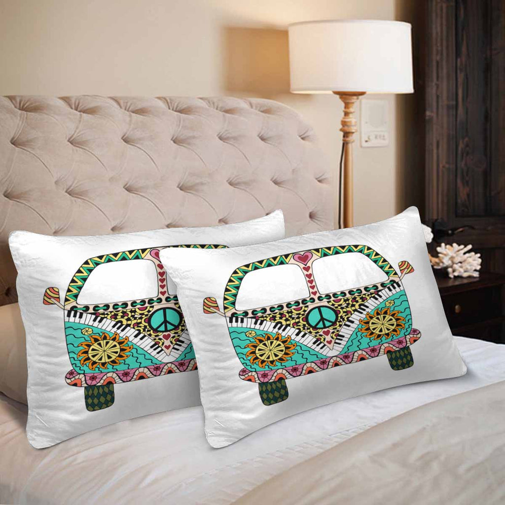 Vintage themed Rectangle Pillow Cases printed Hippie vintage car a mini van