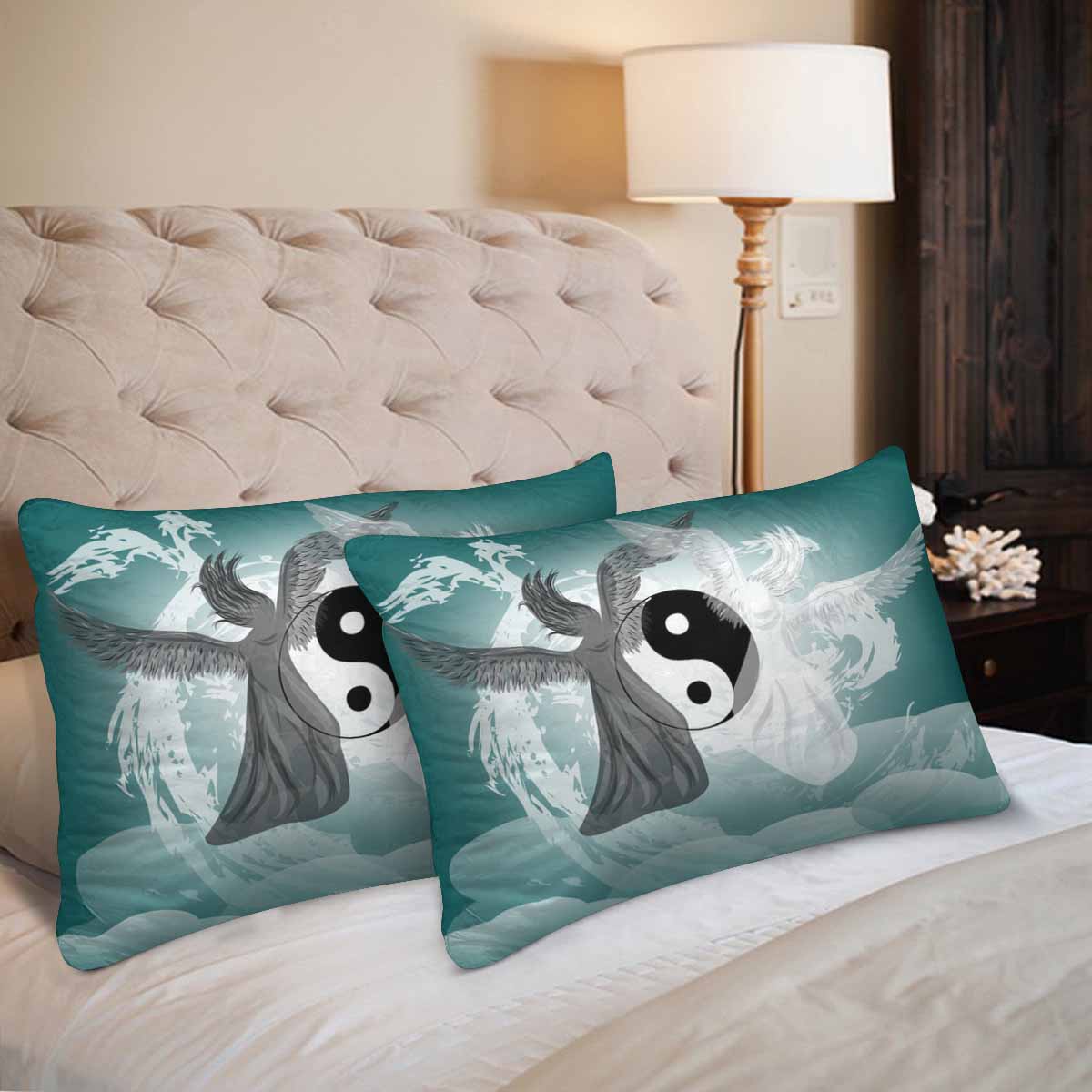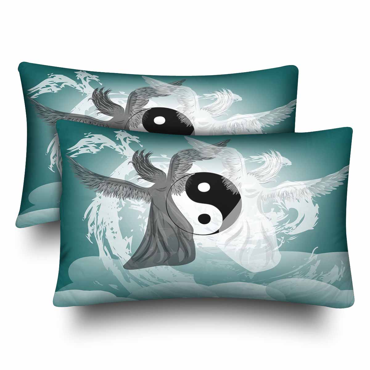 Vintage themed Rectangle Pillow Cases printed Yin and Yang fantasy with angels