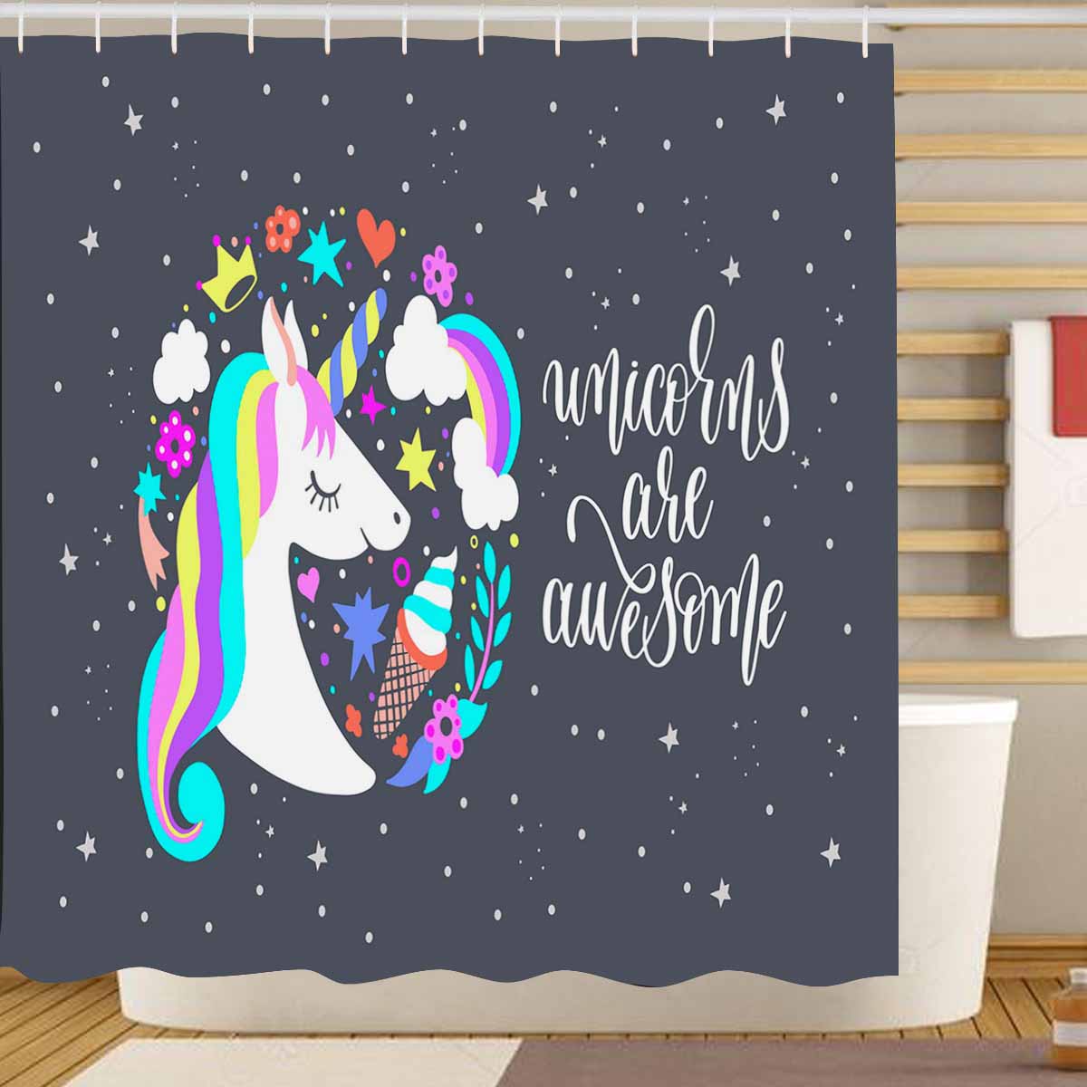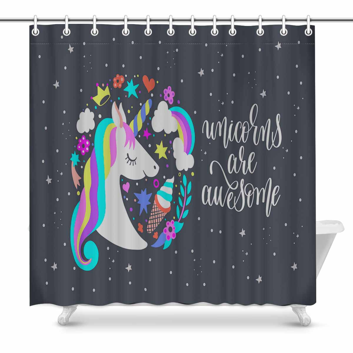 Princess Shower Curtains print with awesome Unicorns