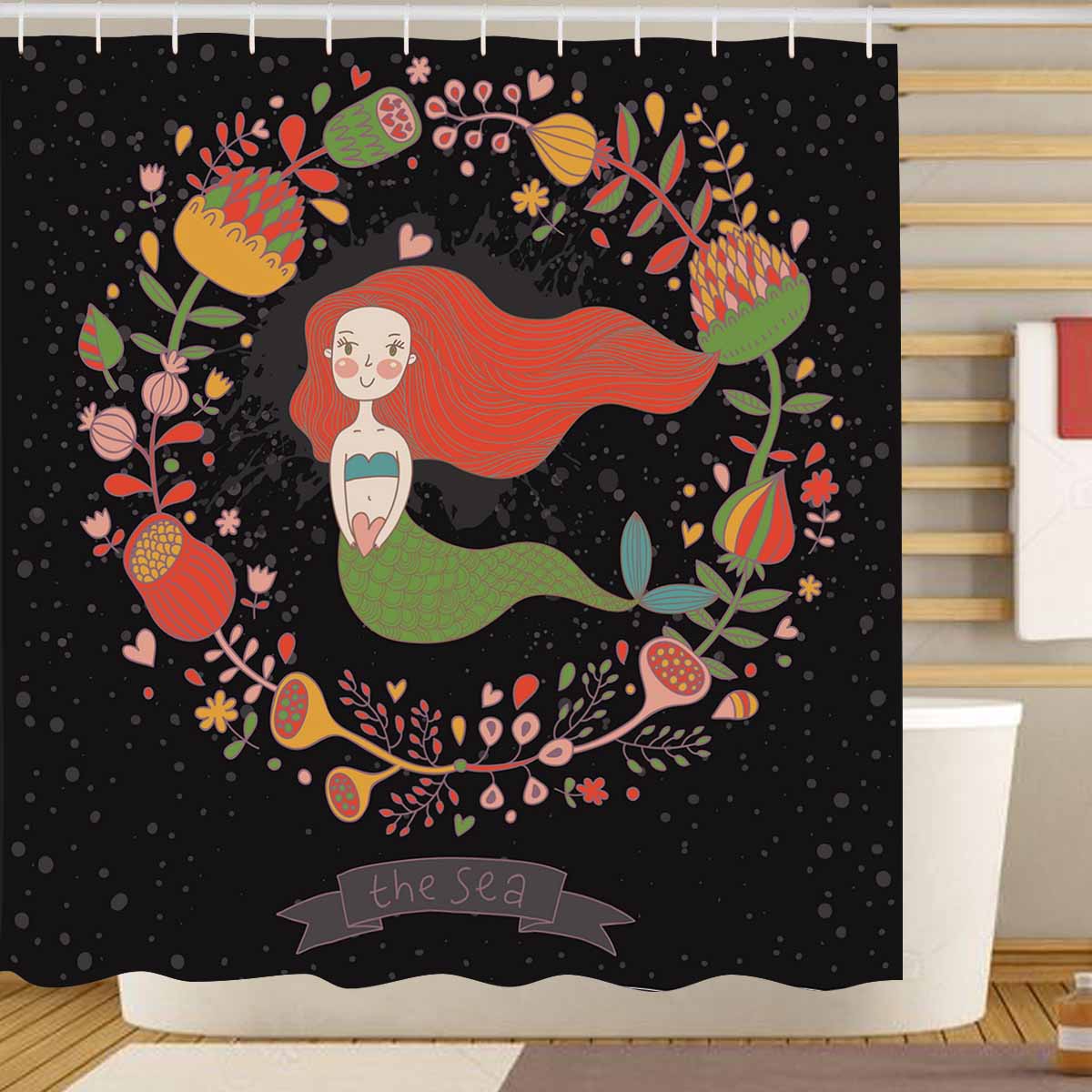 Princess Shower Curtains print with beautiful mermaid princess