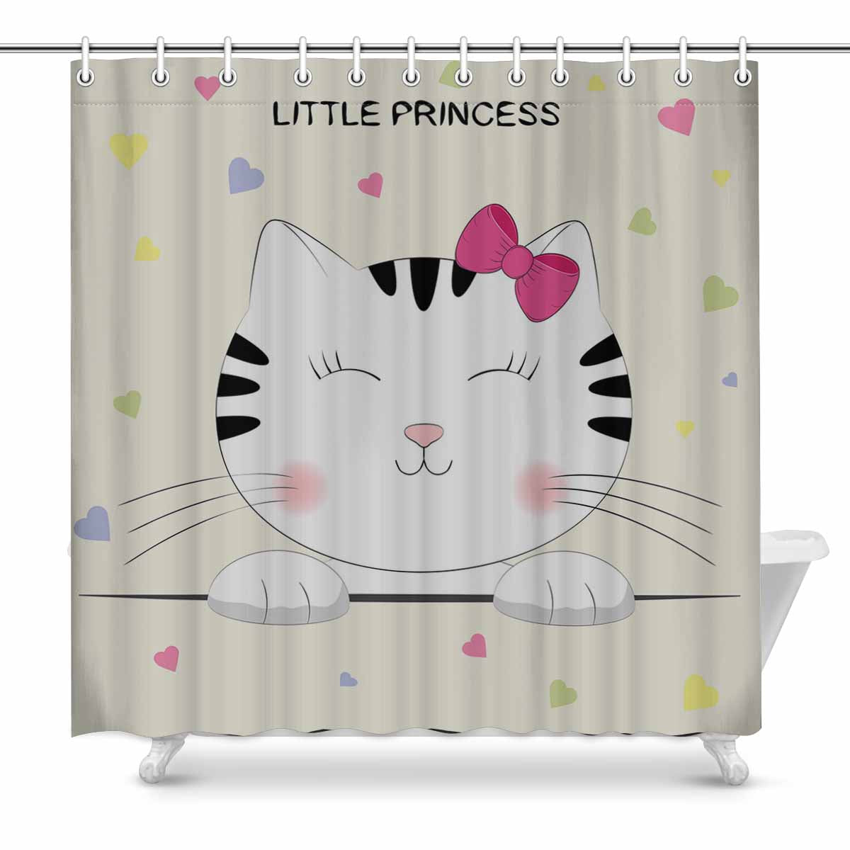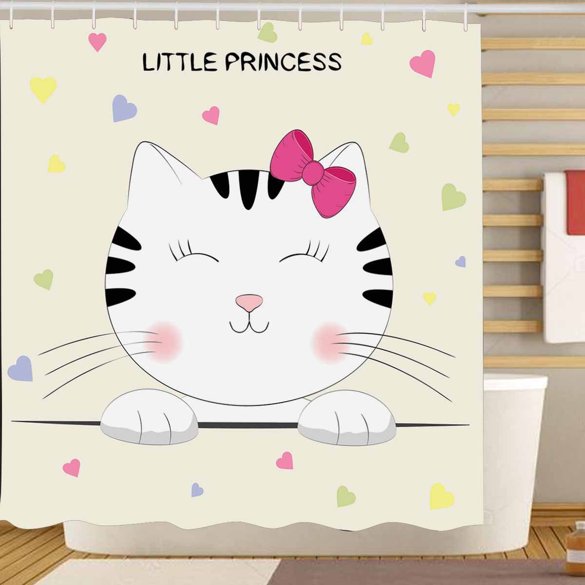 Princess Shower Curtains print with Cute cartoon kitty