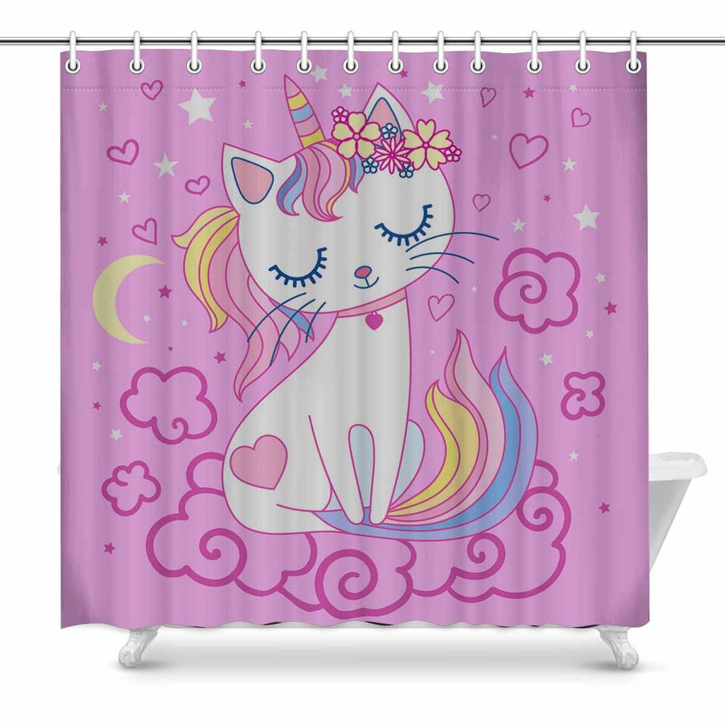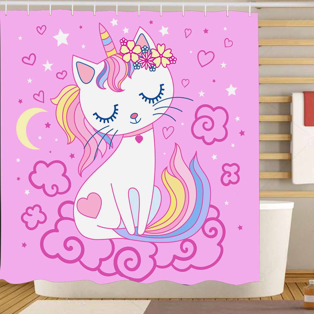 Princess Shower Curtains print with Cute cartoon rainbow cat unicorn