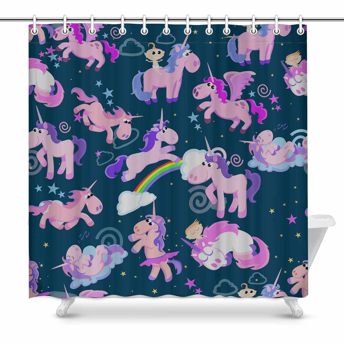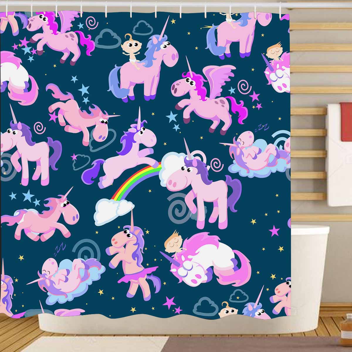 Princess Shower Curtains print with Cute magic unicorn
