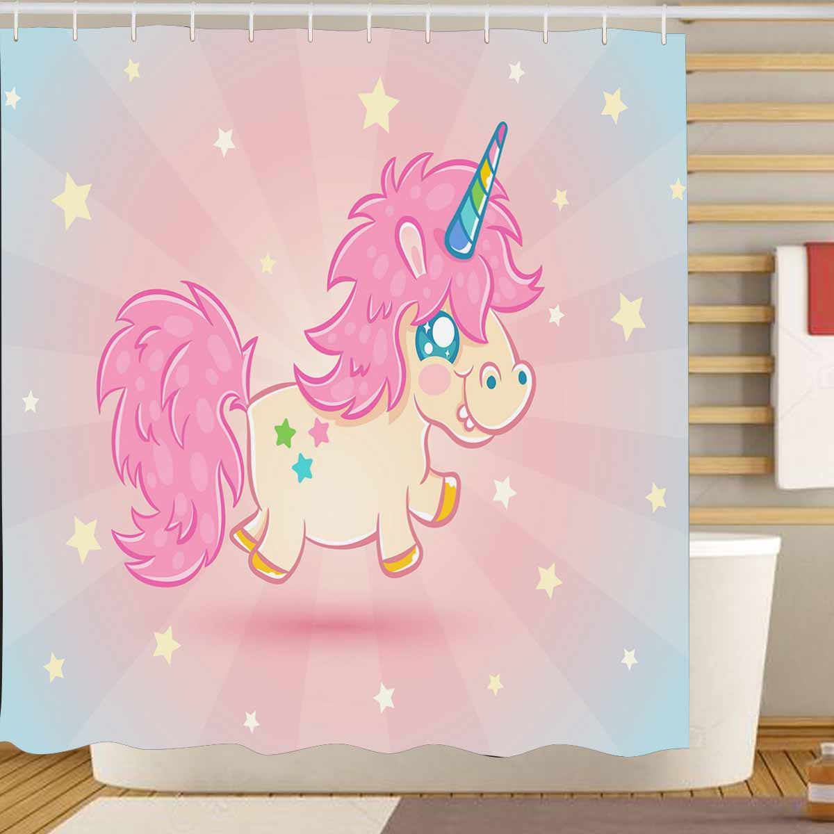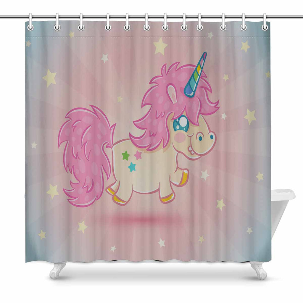 Princess Shower Curtains print with cute pink unicorn