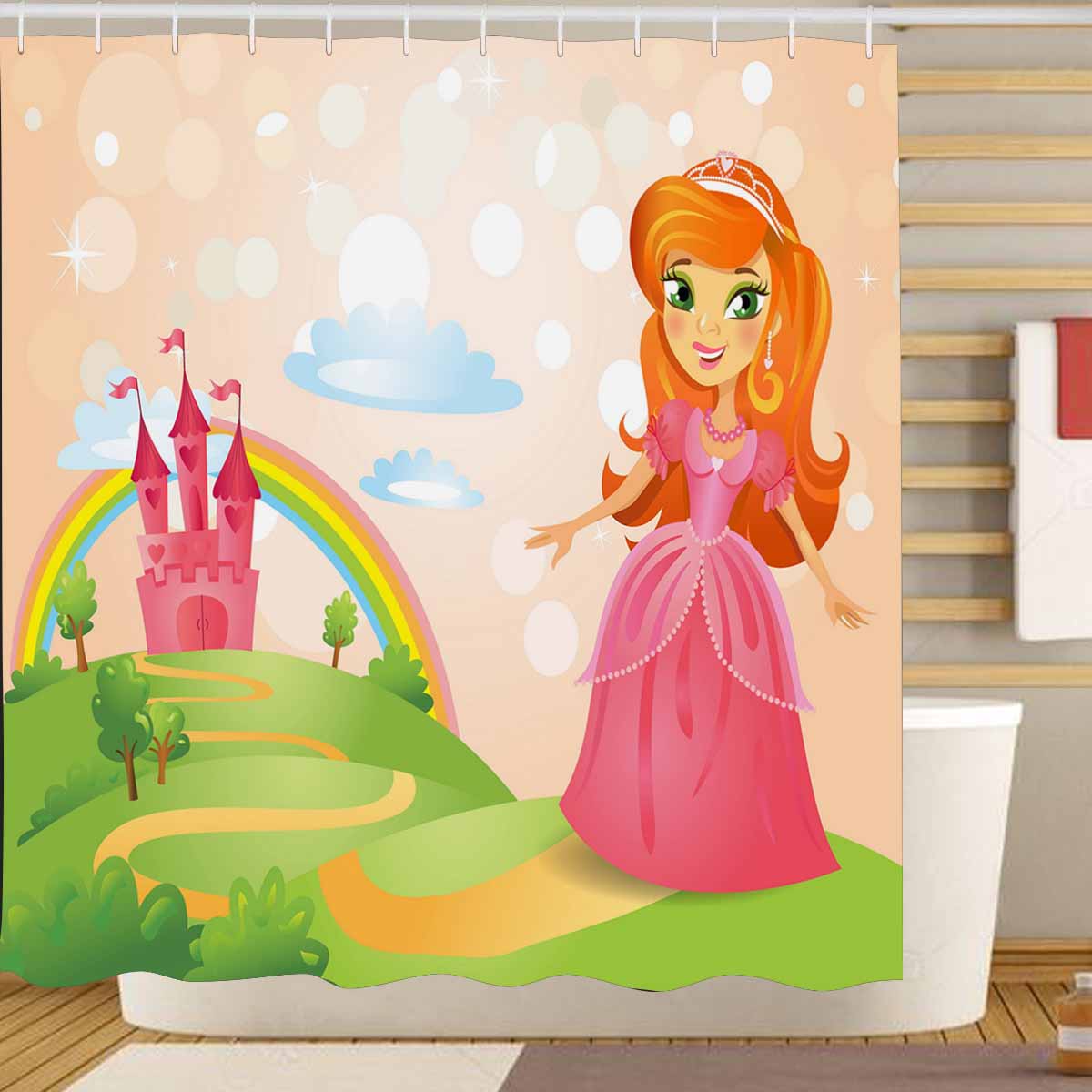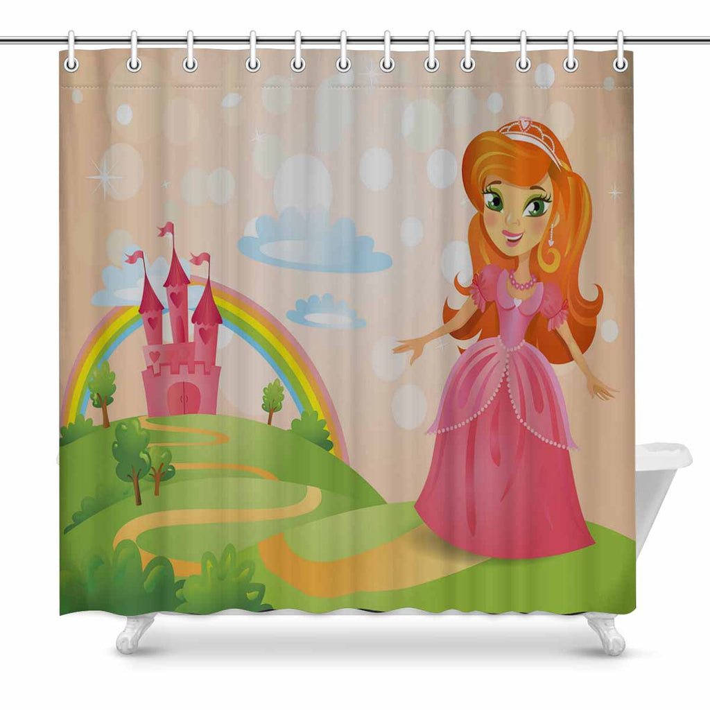 Princess themed print on shower curtains for bathroom, create a brilliant atmosphere in your bathroom, include a selection of different stylish and custom-made designs for your bath decoration.