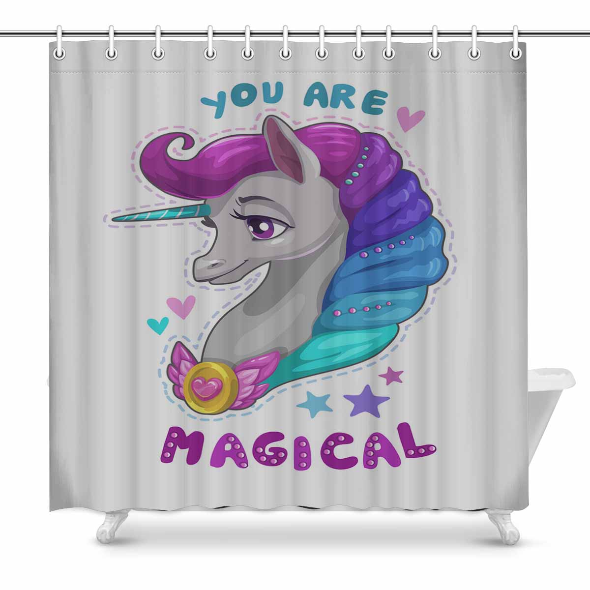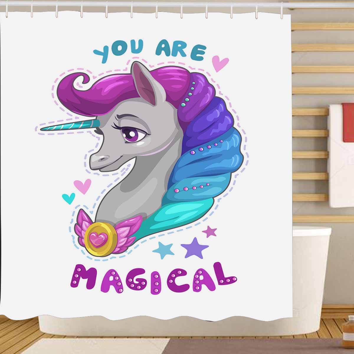 Shower Curtains print with Cute cartoon Princess unicorn