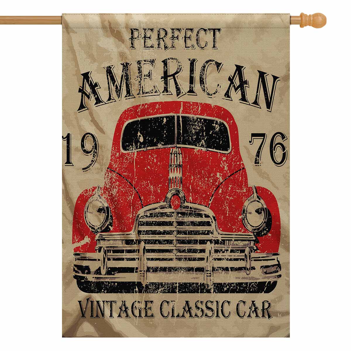 Features sleeve at top that fits standard flagpoles or stands, sold separately.