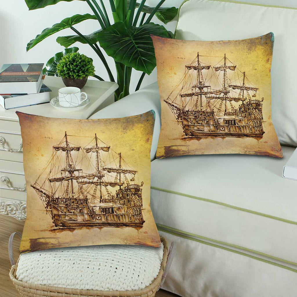 Retro themed Pillow Cases printed with Antique boat sea motive