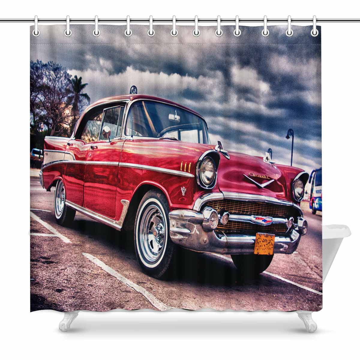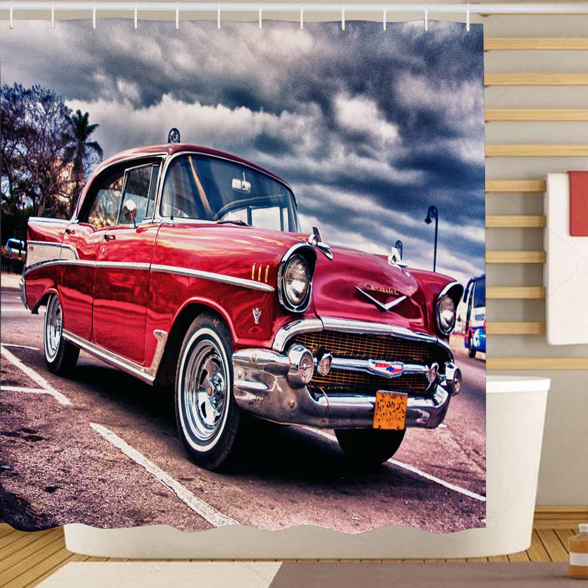 Retro themed print on shower curtains for bathroom, create a brilliant atmosphere in your bathroom, include a selection of different stylish and custom-made designs for your bath decoration.