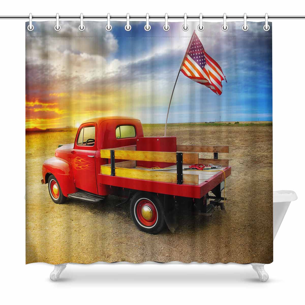 Retro themed print on shower curtains for bathroom, create a brilliant atmosphere in your bathroom, include a selection of different stylish and custom-made designs for your bath decoration.