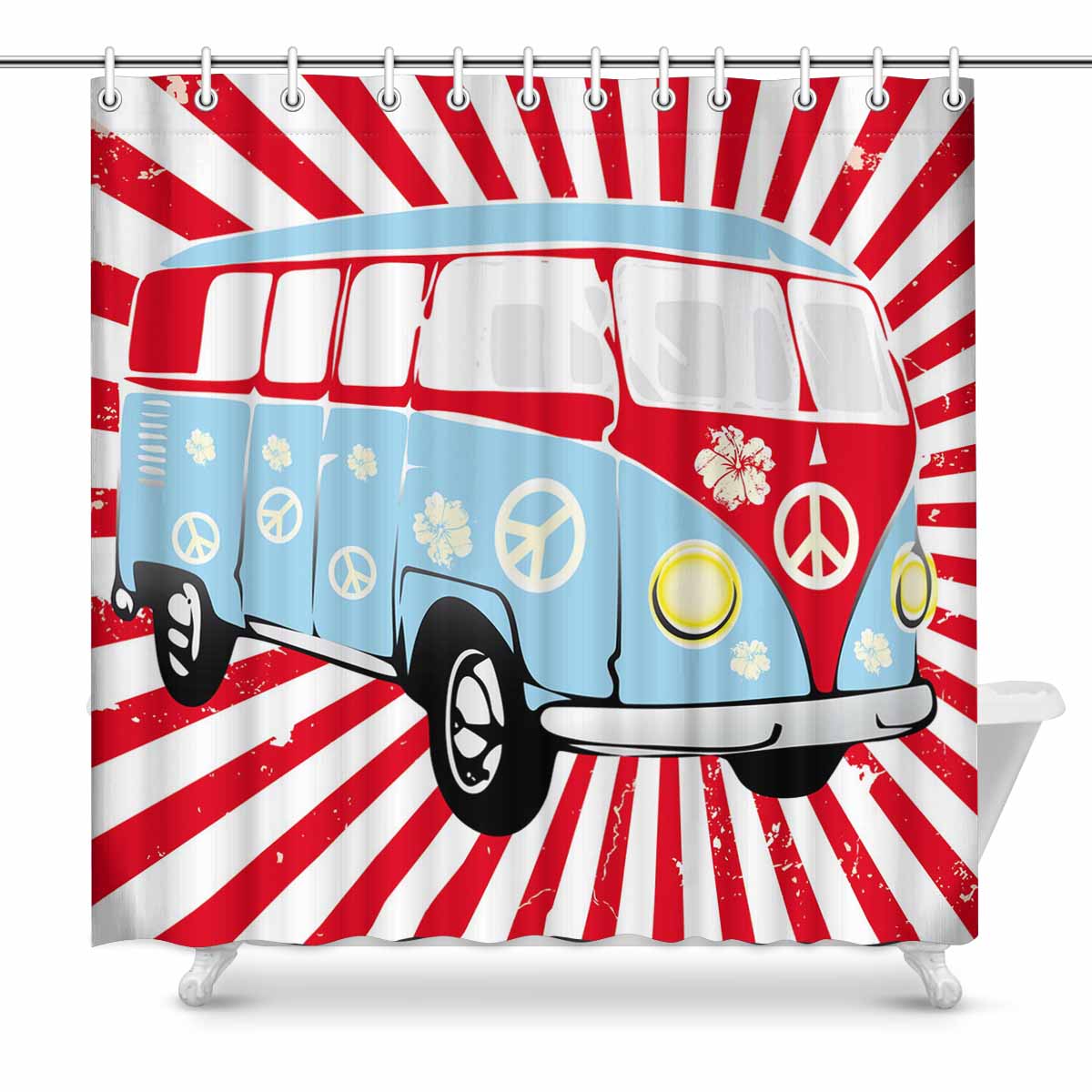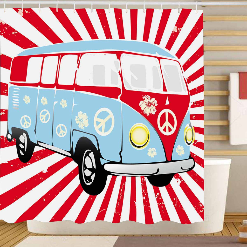 Retro themed print on shower curtains for bathroom, create a brilliant atmosphere in your bathroom, include a selection of different stylish and custom-made designs for your bath decoration.