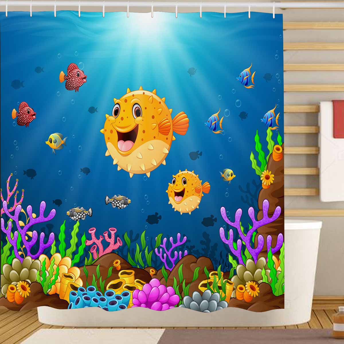 Seaworld Shower Curtains print Cartoon fish Under the sea themed