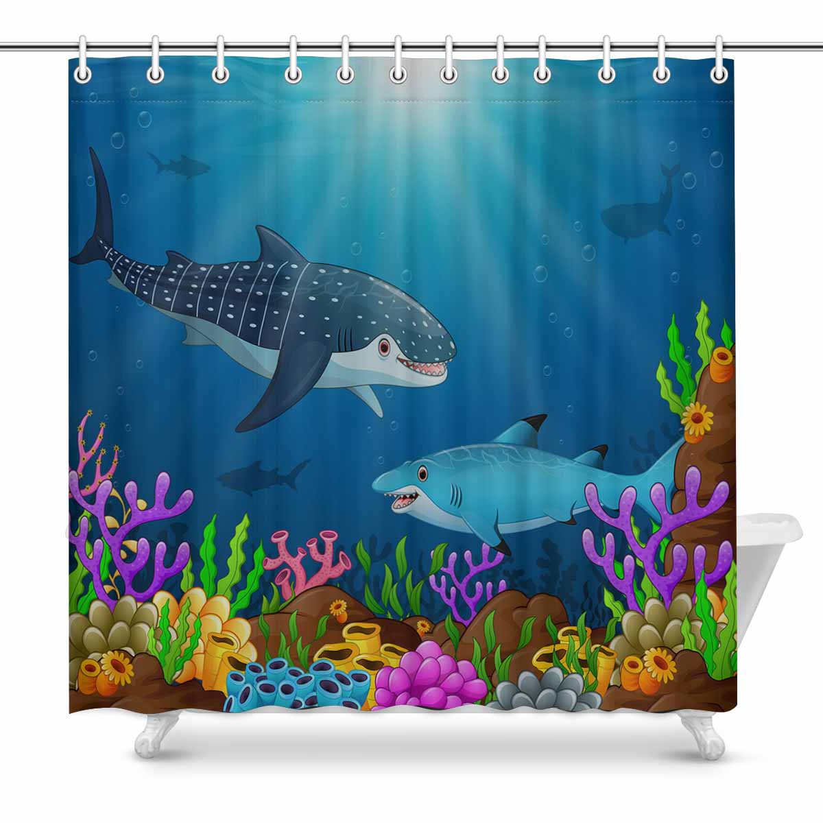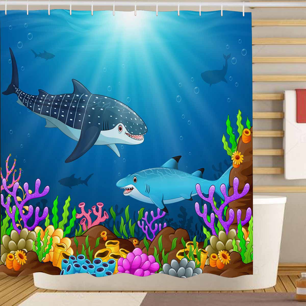Seaworld themed print on shower curtains for bathroom, create a brilliant atmosphere in your bathroom, include a selection of different stylish and custom-made designs for your bath decoration.