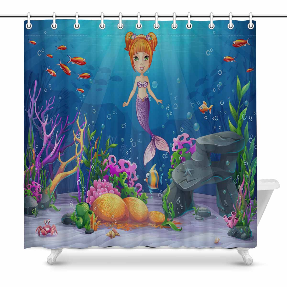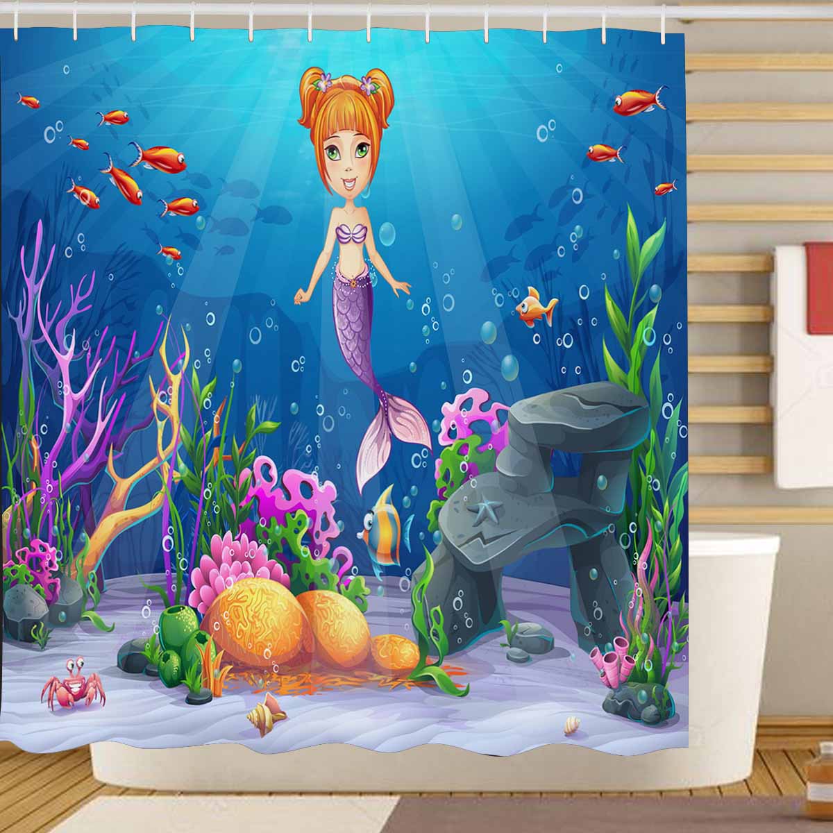 Seaworld themed print on shower curtains for bathroom, create a brilliant atmosphere in your bathroom, include a selection of different stylish and custom-made designs for your bath decoration.