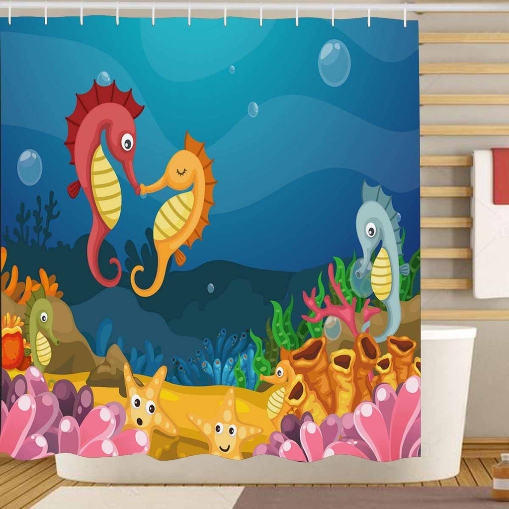 Seaworld Shower Curtains print with cartoon seahorse undersea