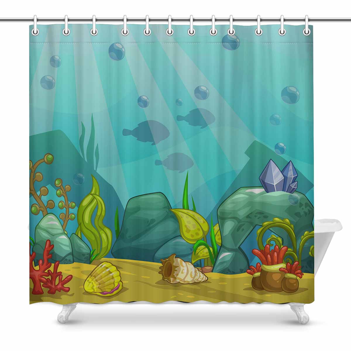 Seaworld themed print on shower curtains for bathroom, create a brilliant atmosphere in your bathroom, include a selection of different stylish and custom-made designs for your bath decoration.